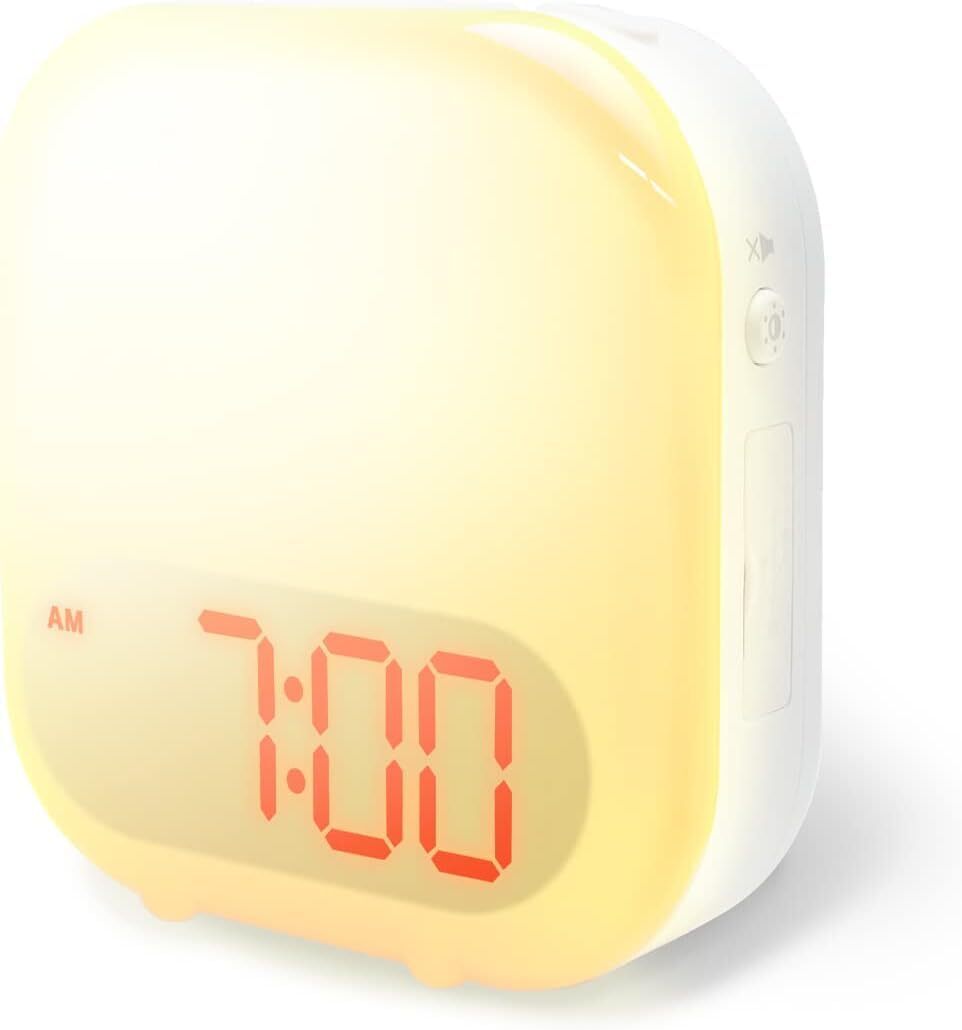 【朝日のような自然な光】暗い光から徐々に明るい光に変化します。グラデーションによる光の変化で日の出のような光をお部屋の中に再現。10分・20分・30分前から光り始める時間を設定できます。アラームだとびっくりしてしまうという方にもおすすめなデジタル目覚まし時計です。※ご注意:電池のみで使用する場合、光モードにしていても作動しません。光モードはUSBケーブルで給電した状態でご使用ください。