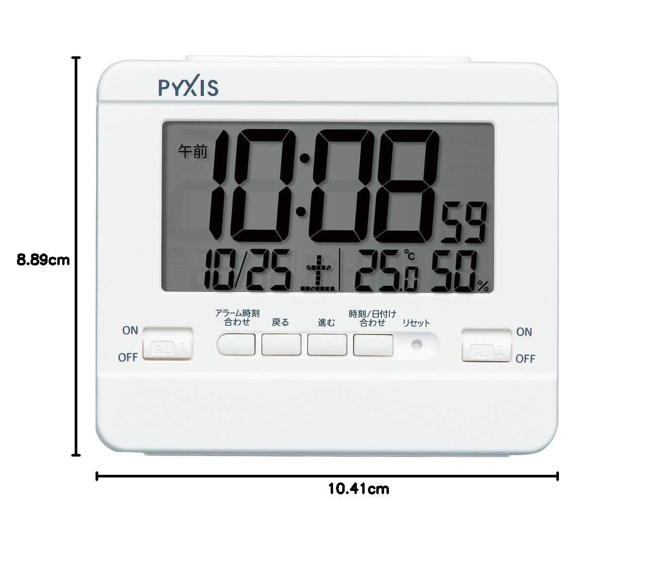 セイコークロック 置き時計 目覚まし時計 掛け時計 デジタル 温度湿度表示 PYXIS ピクシス 本体サイズ:9×10.5×4.2cm NR538W