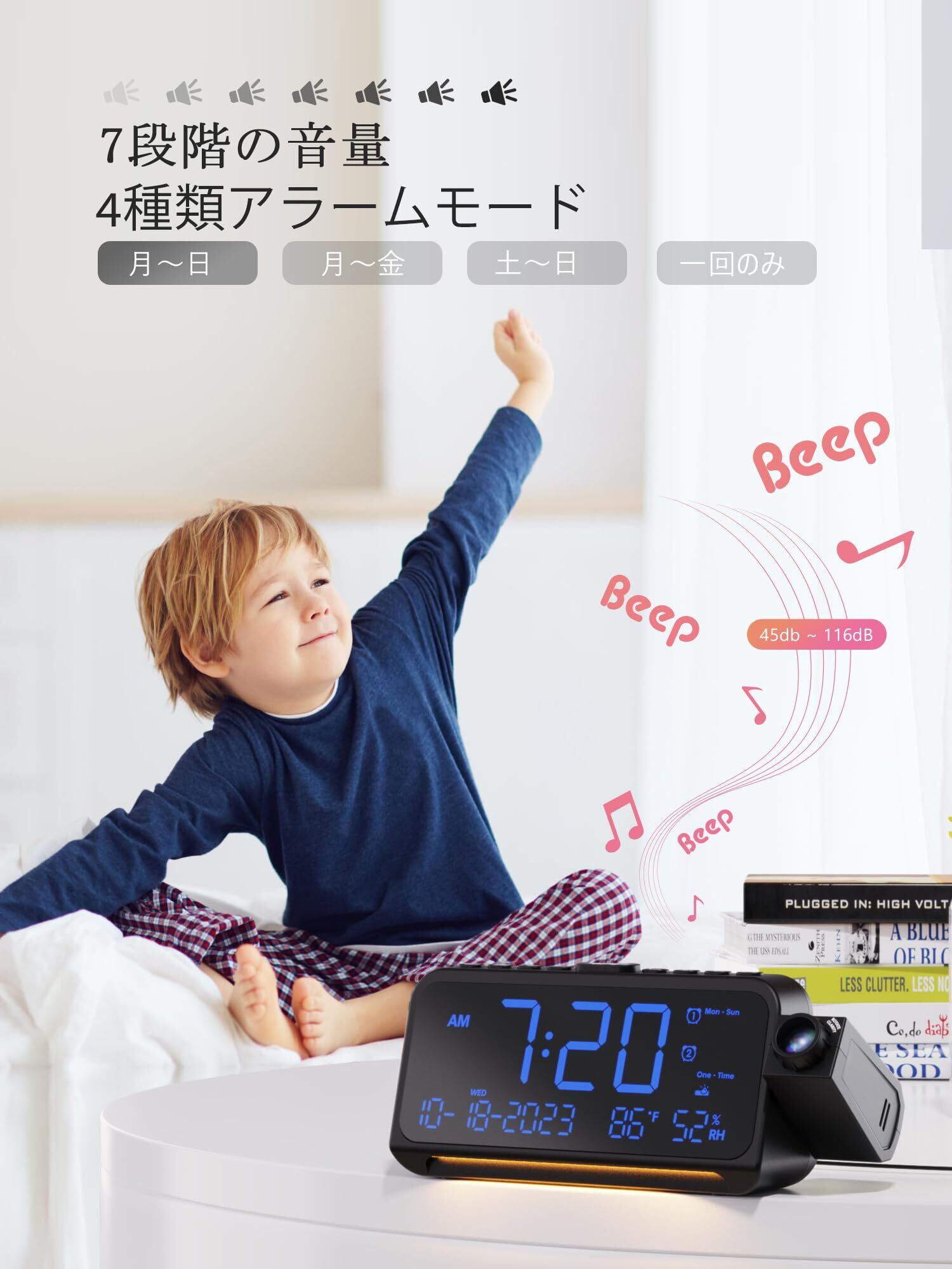 【5段階調節可能なアラーム音量】5段階のアラーム音量は、お好みの度合いに調節できます。ヘビースリーパーと軽い眠りの人の両方がそれを利用できます。