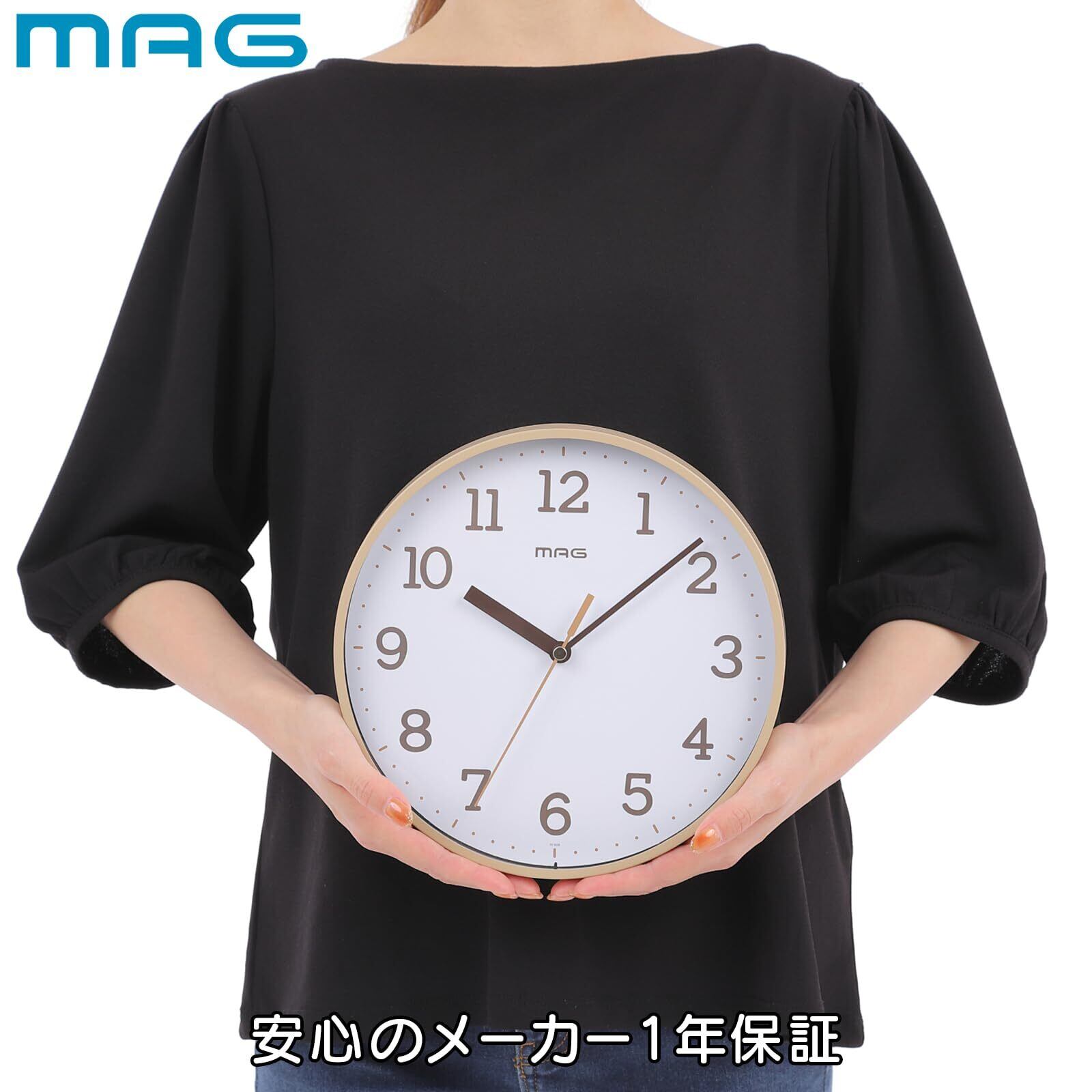 MAG(マグ) 掛け時計 壁掛け時計 アナログ かわいい おしゃれ シンプル インテリア 小型 小さい 静音 連続秒針 直径22.5㎝ アイボリー ガレット W-808A IV-Z ノア精密