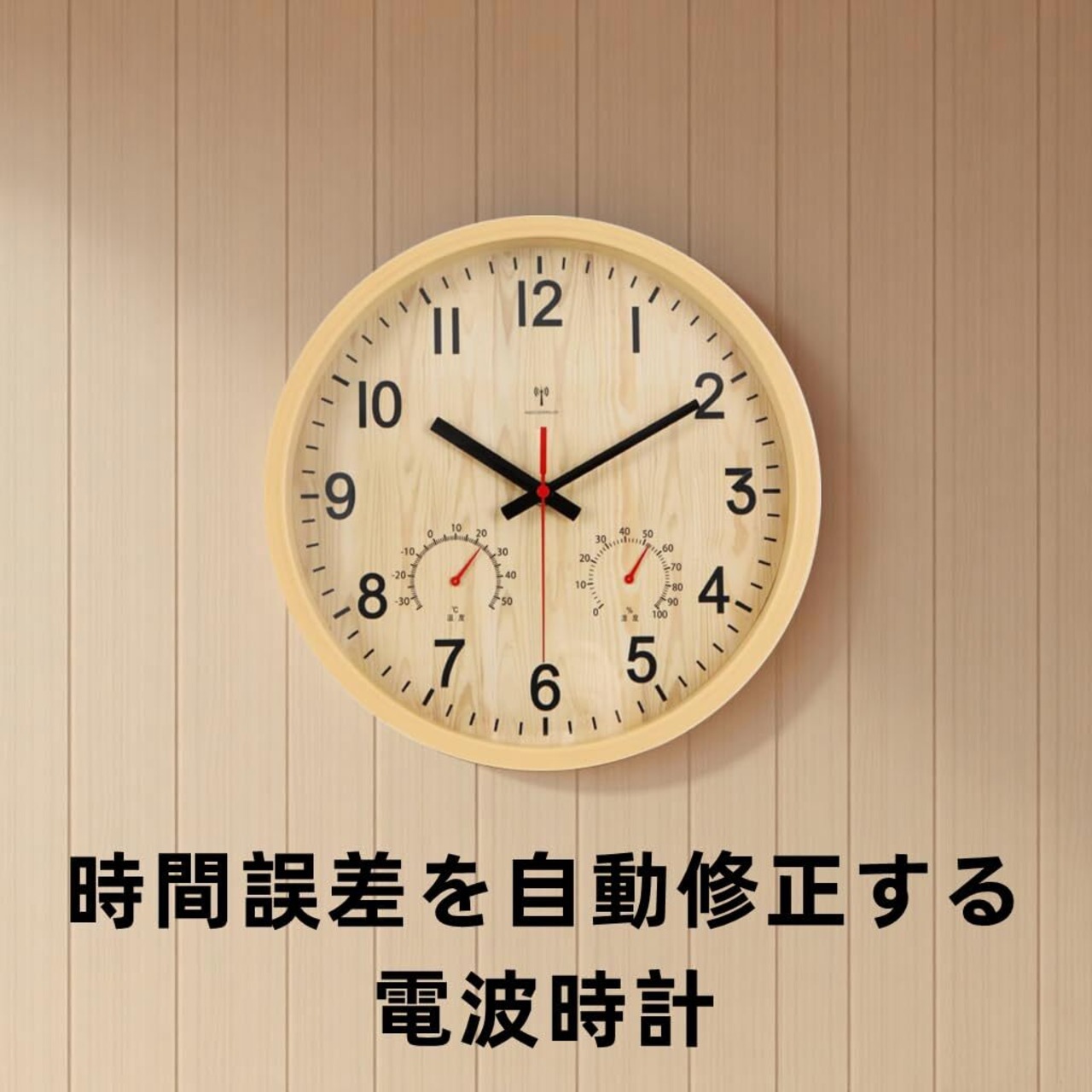 Nbdeal 掛け時計 電波時計 温度 湿度 連続秒針 静か アナログ 直径30cm (ナチュラル)M-7238