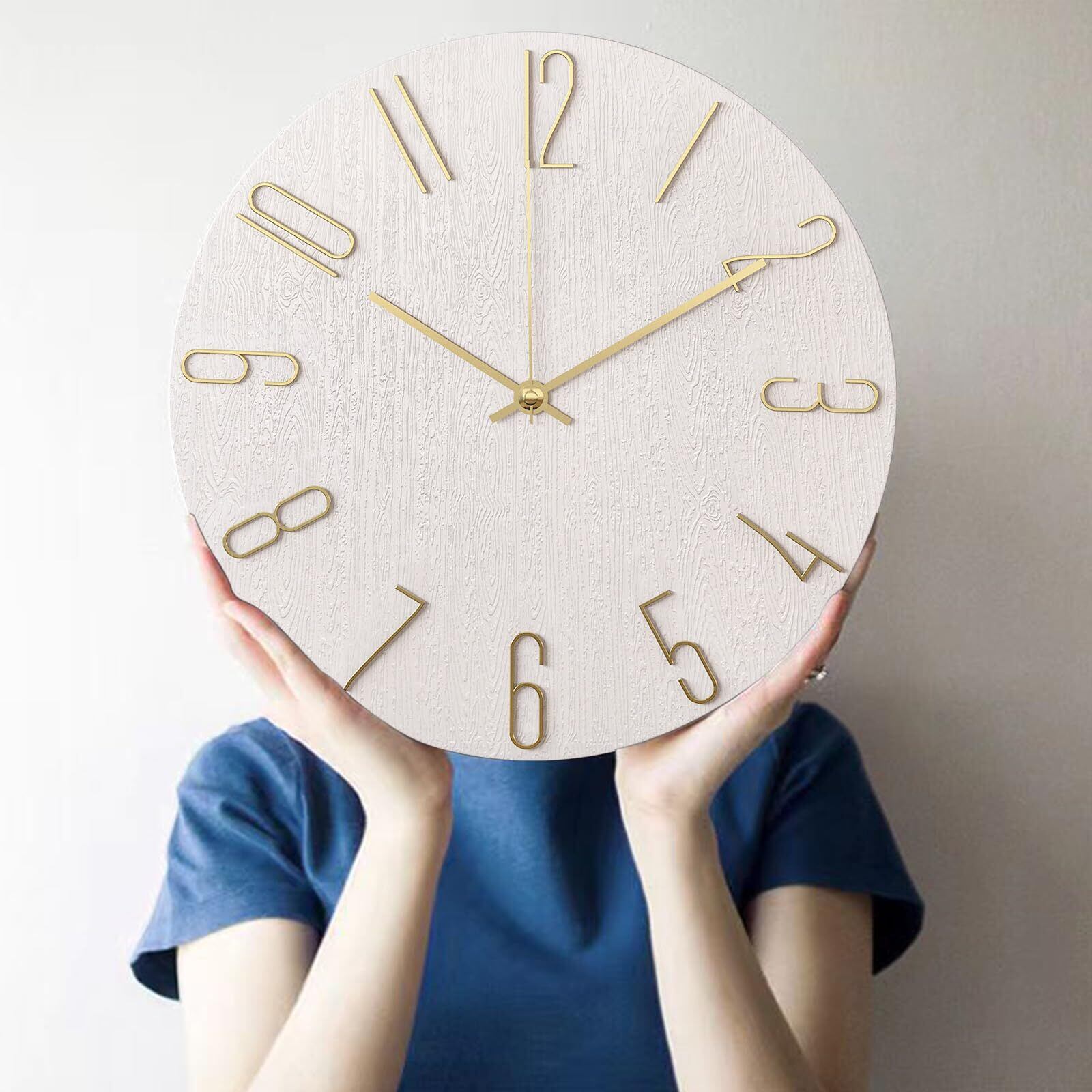 SUOKOMR 壁掛け時計 掛け時計 掛時計 北欧 静音 非電波時計 3D立体数字 30cm直径 アナログ 大きい 軽い オシャレ 自宅 寝室 キッチン リビングルーム オフィス 学校 インテリア ホテル用 かけ時計 電池駆動型壁時計 (ホワイト)