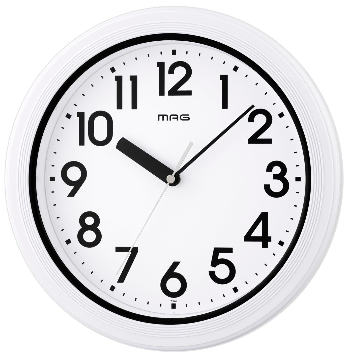 MAG(マグ) 掛け時計 壁掛け時計 アナログ 防水 防塵 厨房 水回り 工場 脱衣所 風呂 ガレージ IP67 プラスチック 静音 連続秒針 直径27.8㎝ ホワイト プラデガード W-800A WH-Z ノア精密