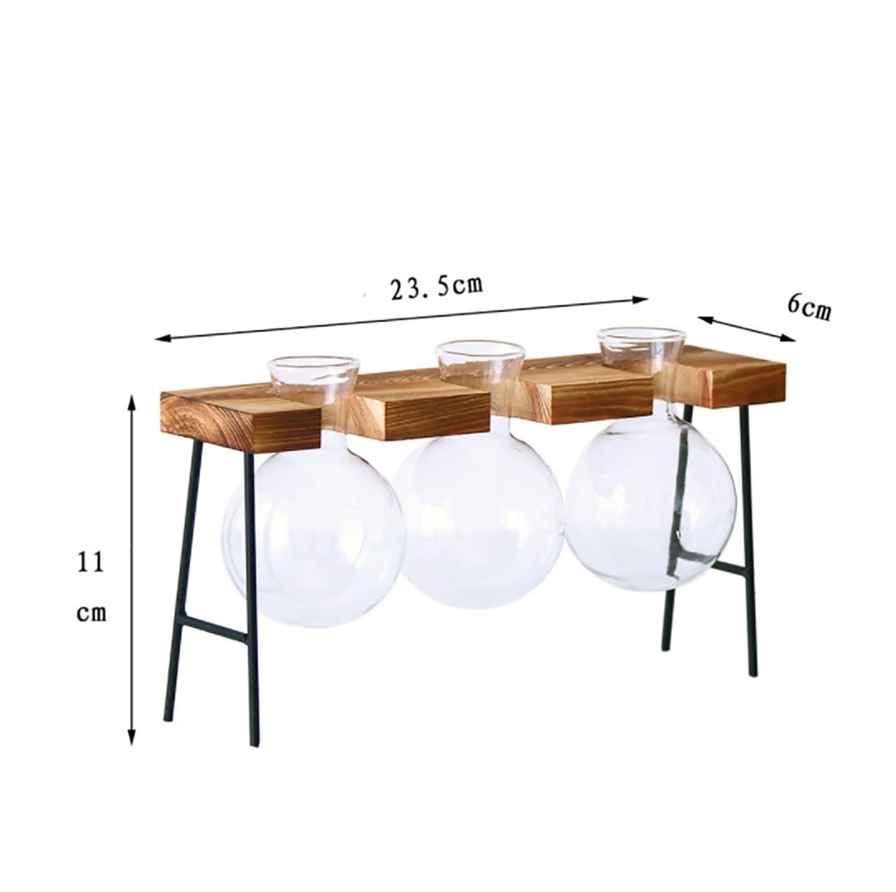 PARK SEVENTEEN 花瓶 フラスコ 一輪挿し 植木鉢 ガラス 木製フレーム 鉄製支柱 (bottle3個, クリア)