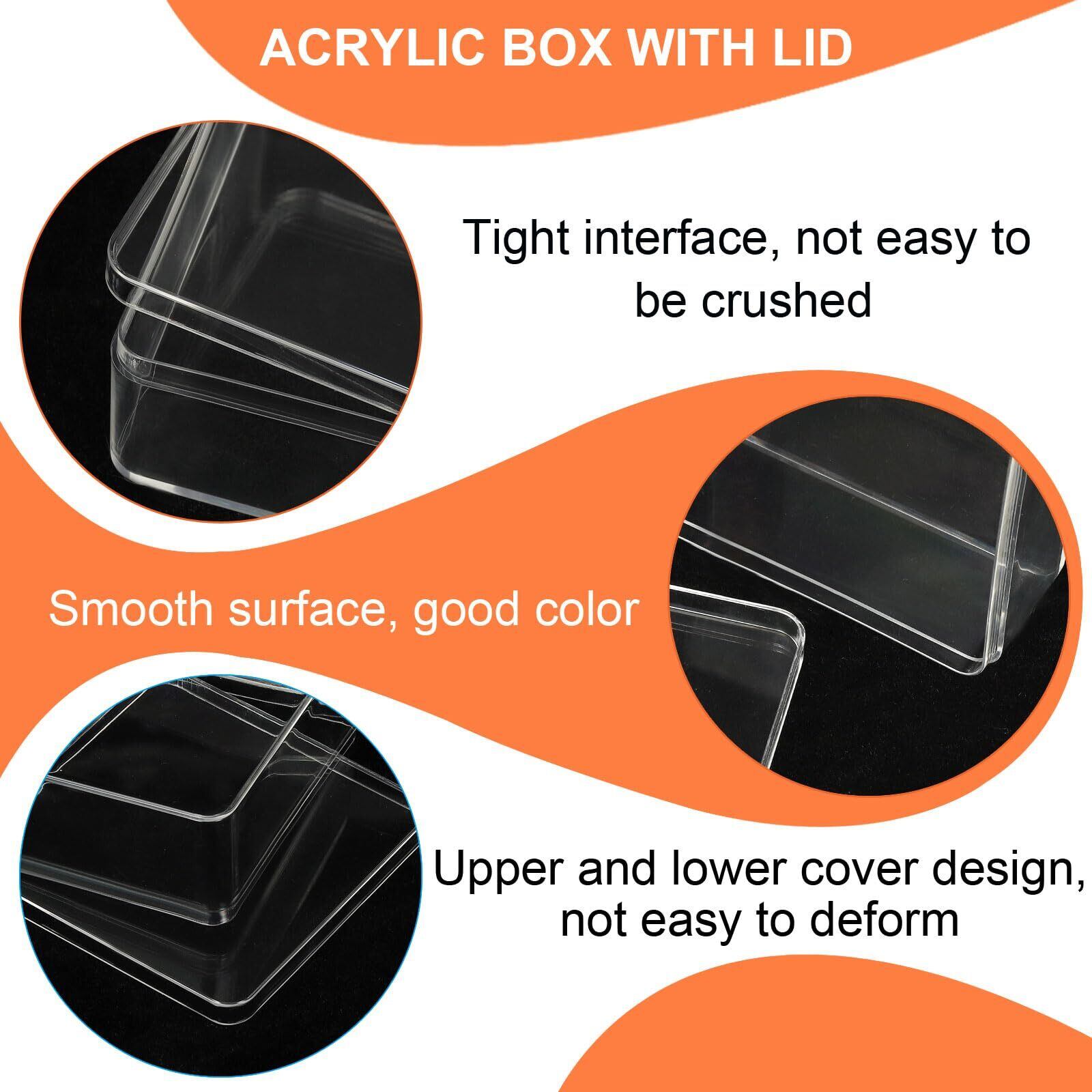 信頼性のあるアクリル製蓋付きボックス - 透明なプラスチックボックスはアクリル製で、滑らかで軽量、丈夫で強固、破損しにくく、コンパクトで場所を取らず、持ち運びが簡単で長期間使用できます。蓋のデザインにより、ほこりを防ぎ、内部のアイテムを清潔に保ちます。