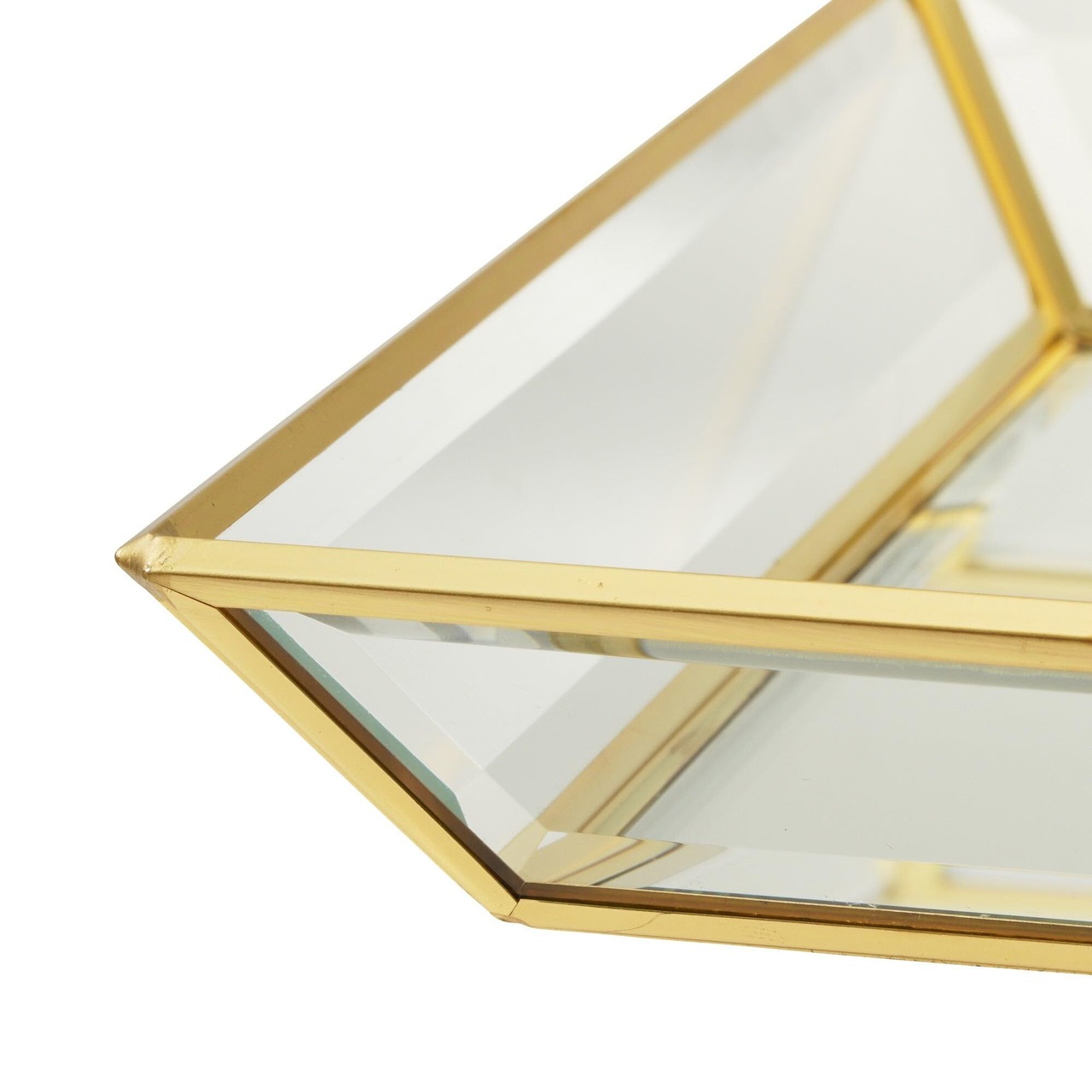 ゴールドのメタルフレームが高級感あふれる、上品なデザインのトレイです。シンプルでありつつ、ガラスとミラーの輝きが素敵なアイテムです。