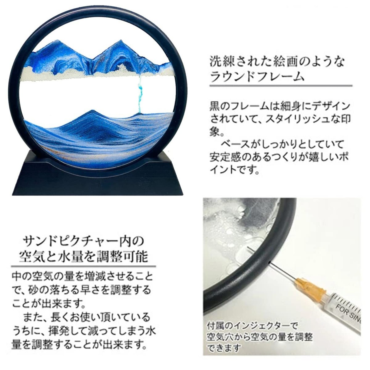 Vukayoサンドピクチャー ラウンド 砂絵 置き型 アート インテリア 砂 スタイリッシュ モダン SH-01 (M, 青)