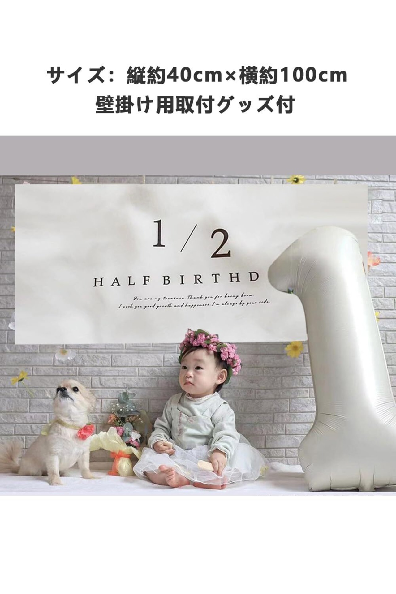 1.ハーフバースデー用タペストリー、お誕生日のお祝いを特別な日に彩る、おしゃれなハーフバースデー 飾りセットです。