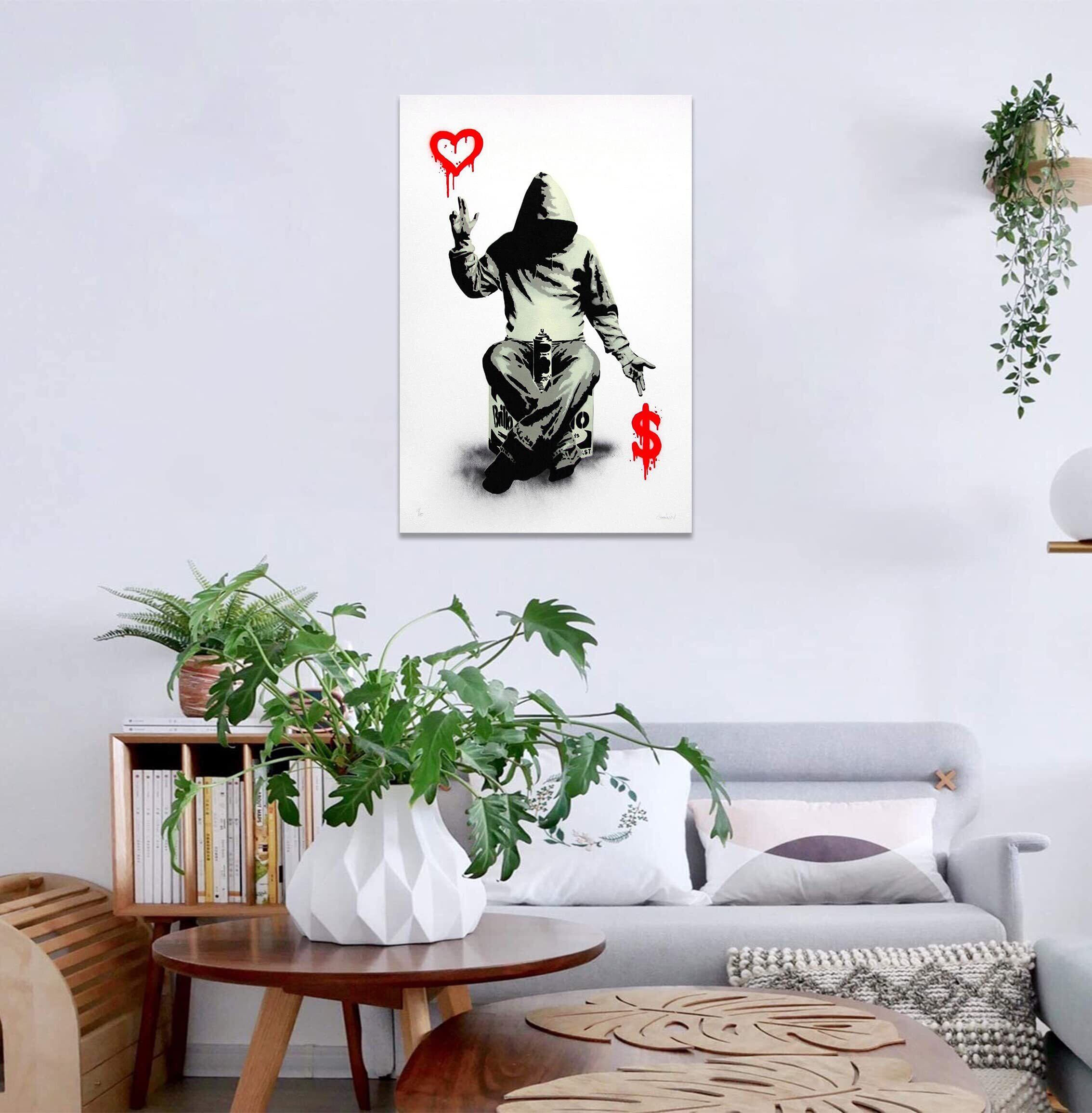 Banksy バンクシー 愛とお金 ポスター アートパネル 絵画 写真 アートパネル 壁掛け 部屋飾り 背景絵画 美しい贈り物 プレゼント-リビング、ダイニング、寝室、お風呂、オフィス、バー 玄関装飾用 木枠付きの完成品 (30X40cm)