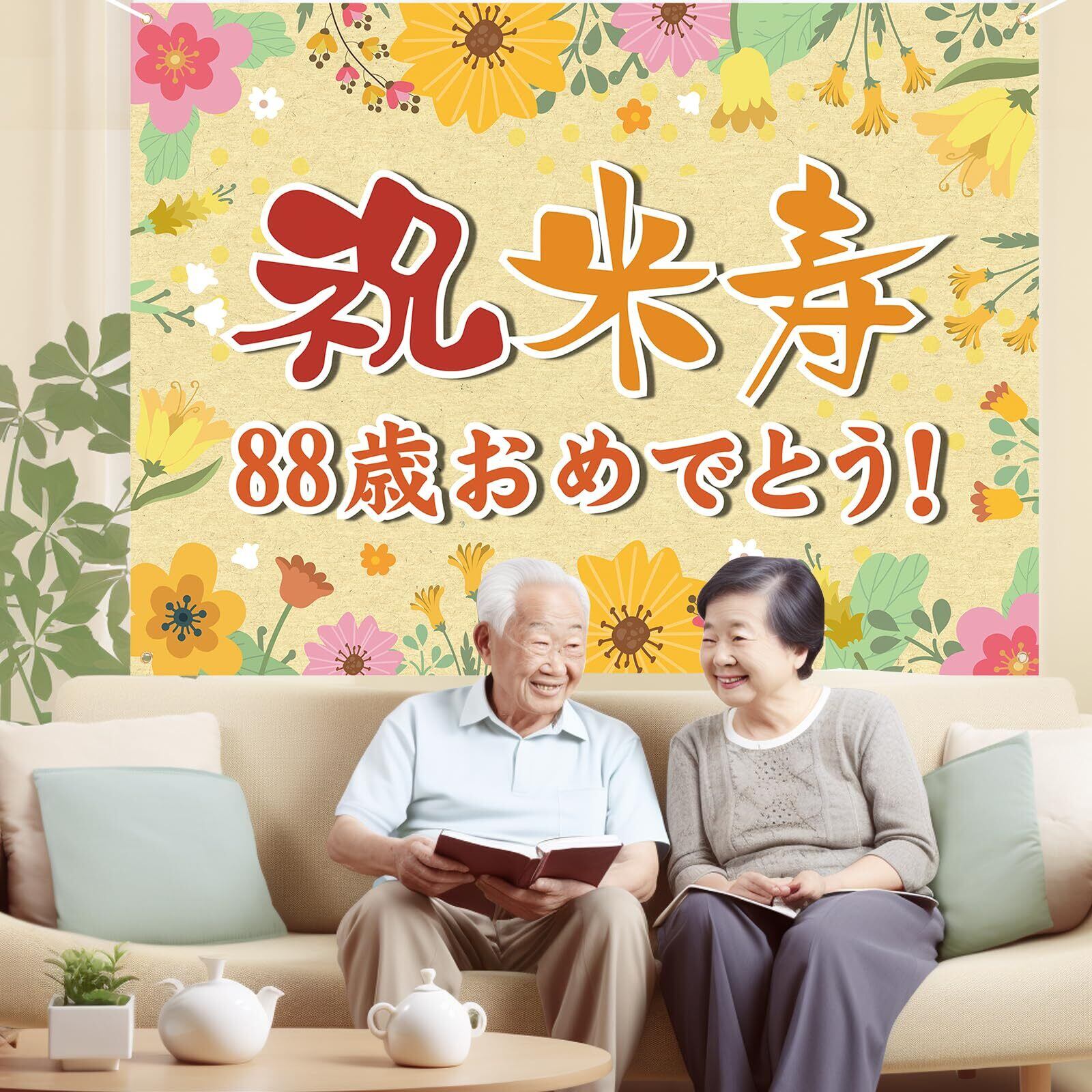 米寿祝い 誕生日 バースデー タペストリー 飾り付け 88歳 おめでとう 長寿祝い 横断幕 布ポスター 135*100cm パーティー 感謝 プレゼント 記念日 お祝い 飾り 装飾 金
