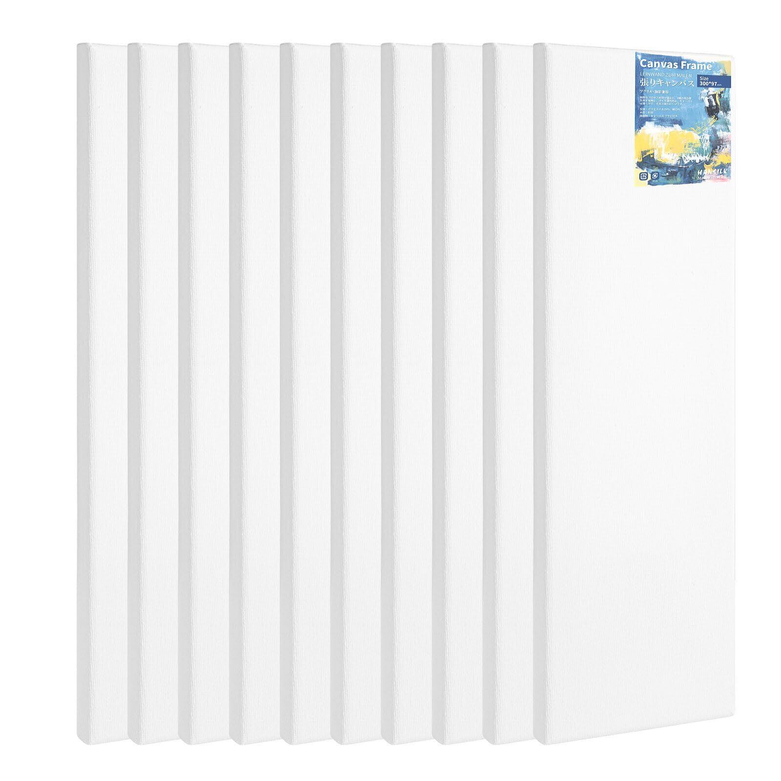HANSILK キャンバス 化繊綿 張りキャンバス 長方形 キャンバス画材 ライト木製フレーム 厚手 パネル 画布 描画 絵画ボード 水彩 油絵 アクリル 10枚/セット