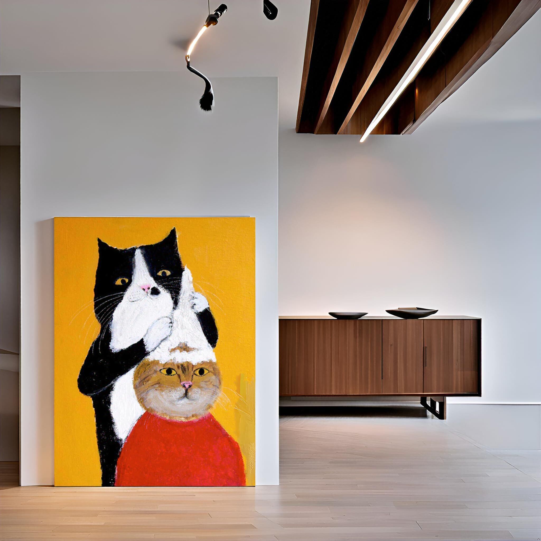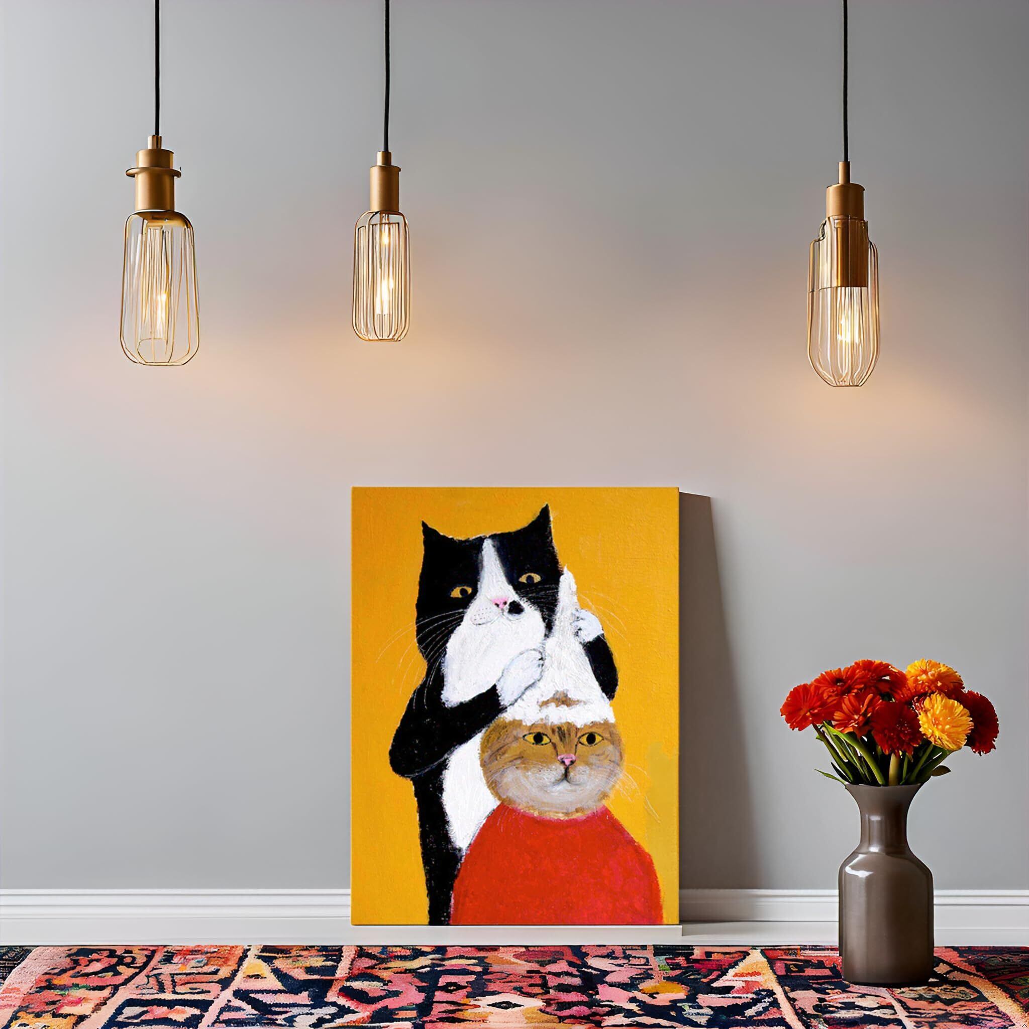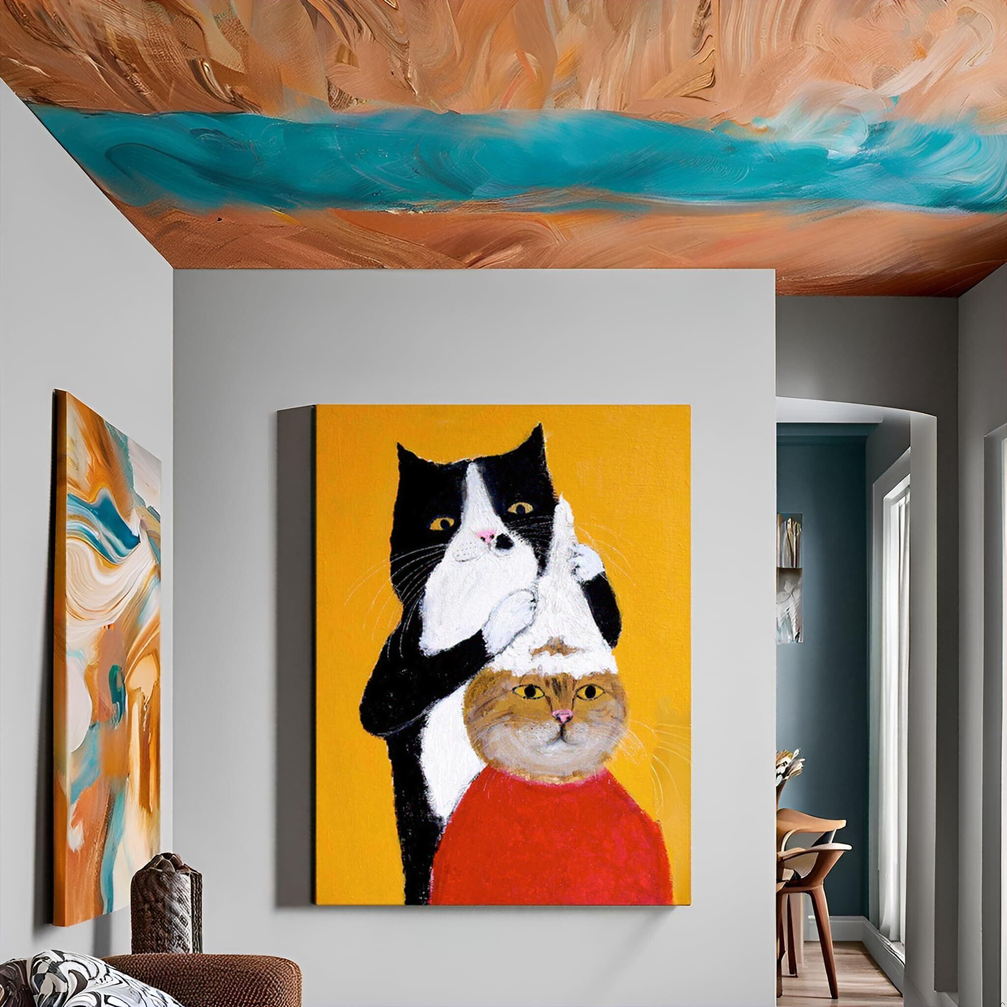 猫 ポスター イラスト 絵画 漫画 アートパネル 動物 かわいい 猫 キャンバス アートボード 玄関 壁画 アニマル 壁掛け 壁飾り 部屋飾り 飾り絵 絵 絵画 油絵 ソファの背景画 開運 インテリア 木枠付きの完成品