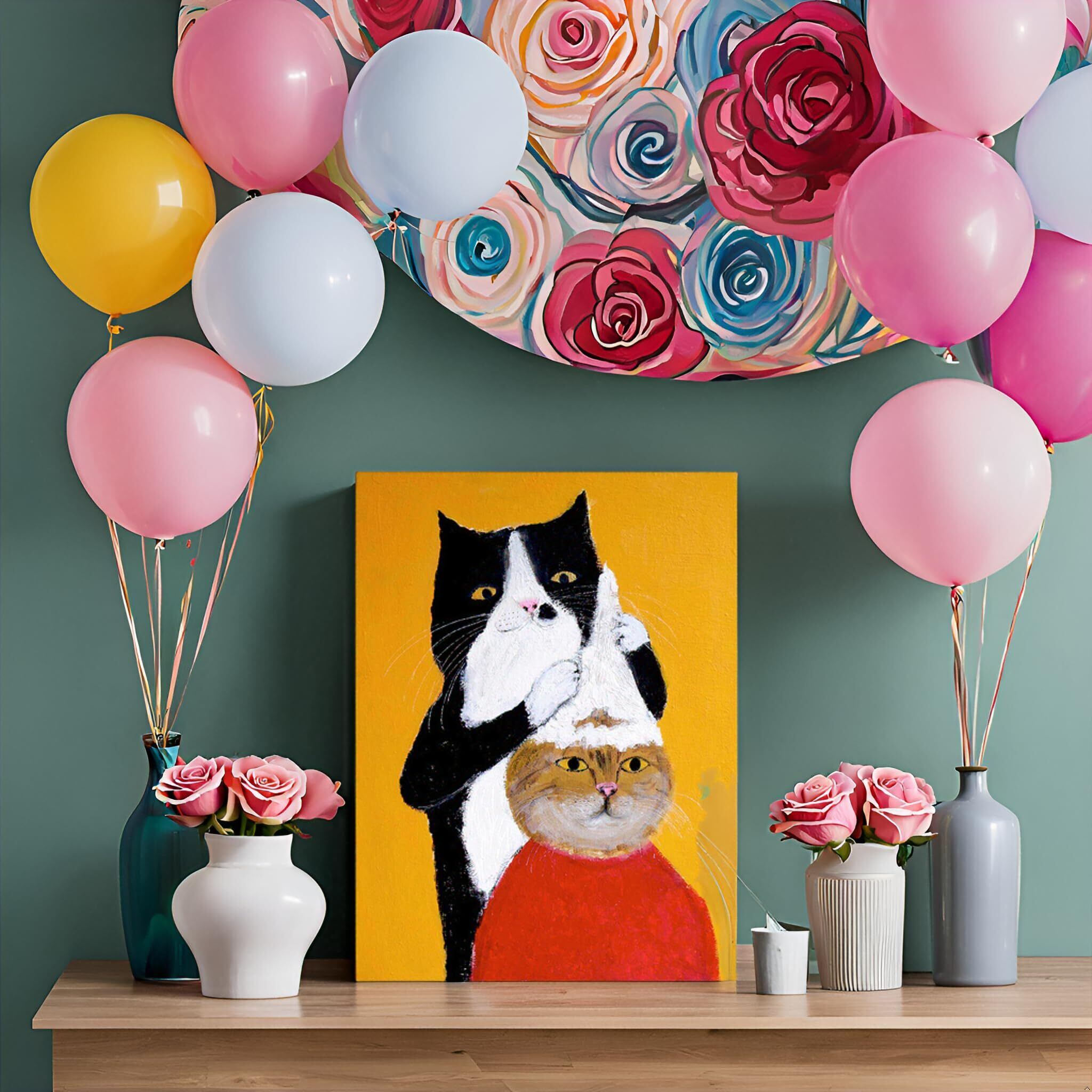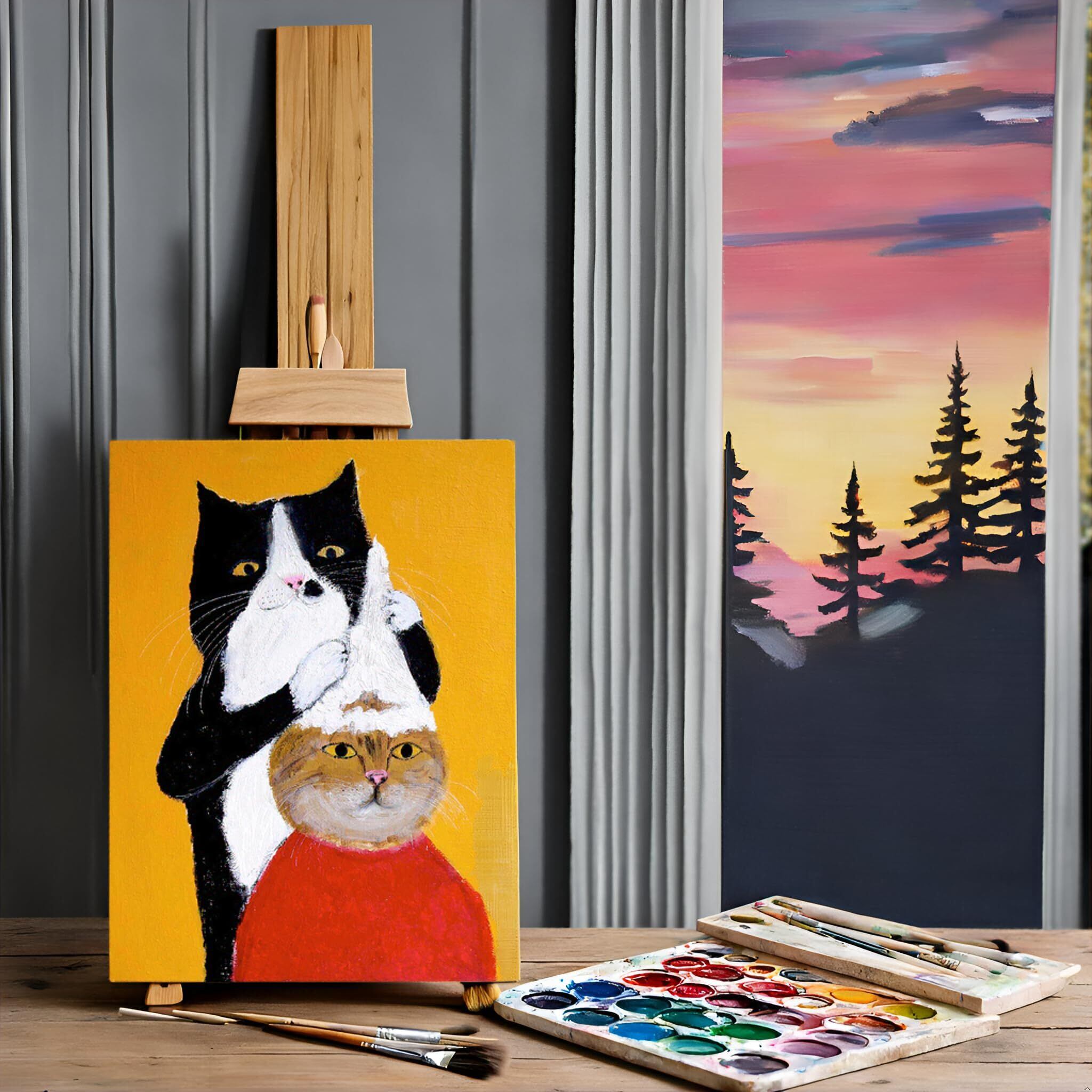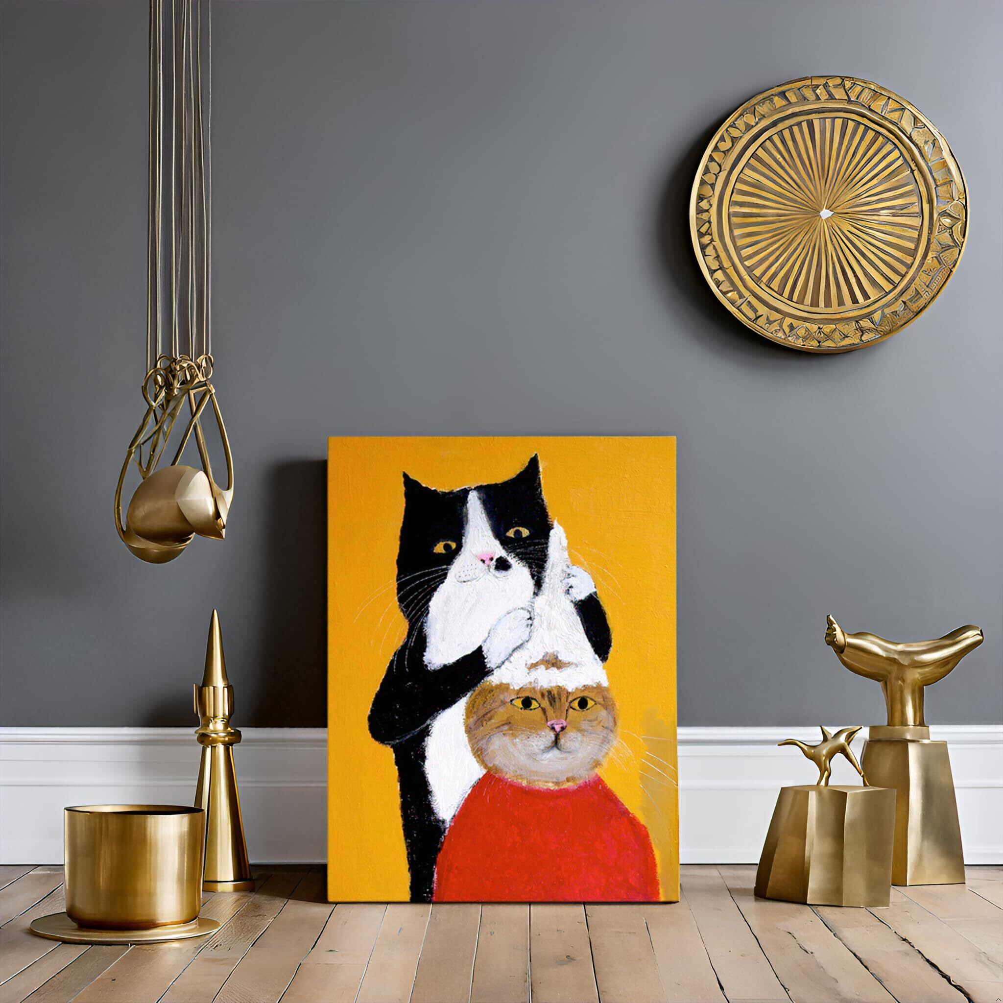 猫 ポスター イラスト 絵画 漫画 アートパネル 動物 かわいい 猫 キャンバス アートボード 玄関 壁画 アニマル 壁掛け 壁飾り 部屋飾り 飾り絵 絵 絵画 油絵 ソファの背景画 開運 インテリア 木枠付きの完成品