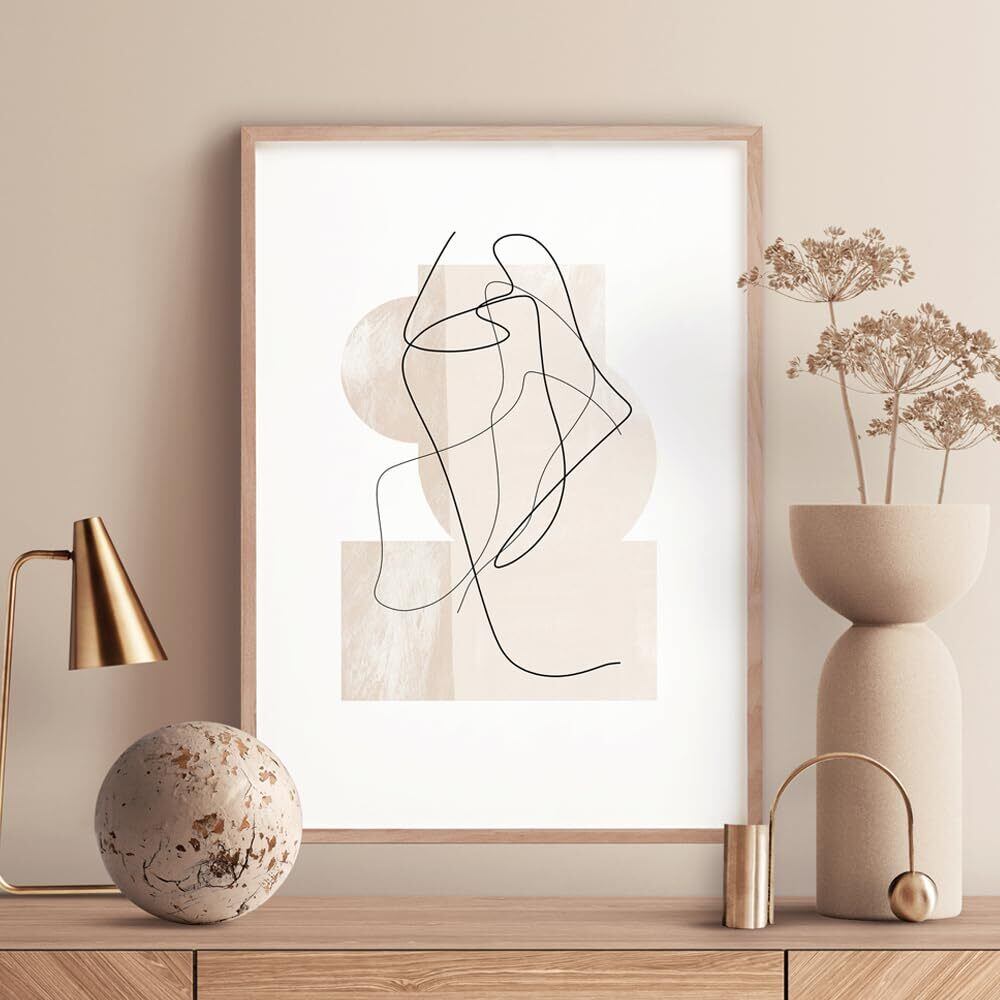 こちらは、ベージュモチーフを使った北欧デザインの線画ポスターです。