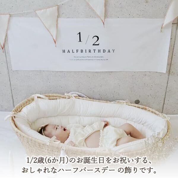 ハーフバースデー用タペストリー、1/2歳(6か月)のお誕生日をお祝いする、おしゃれなハーフバースデー 飾りセットです。