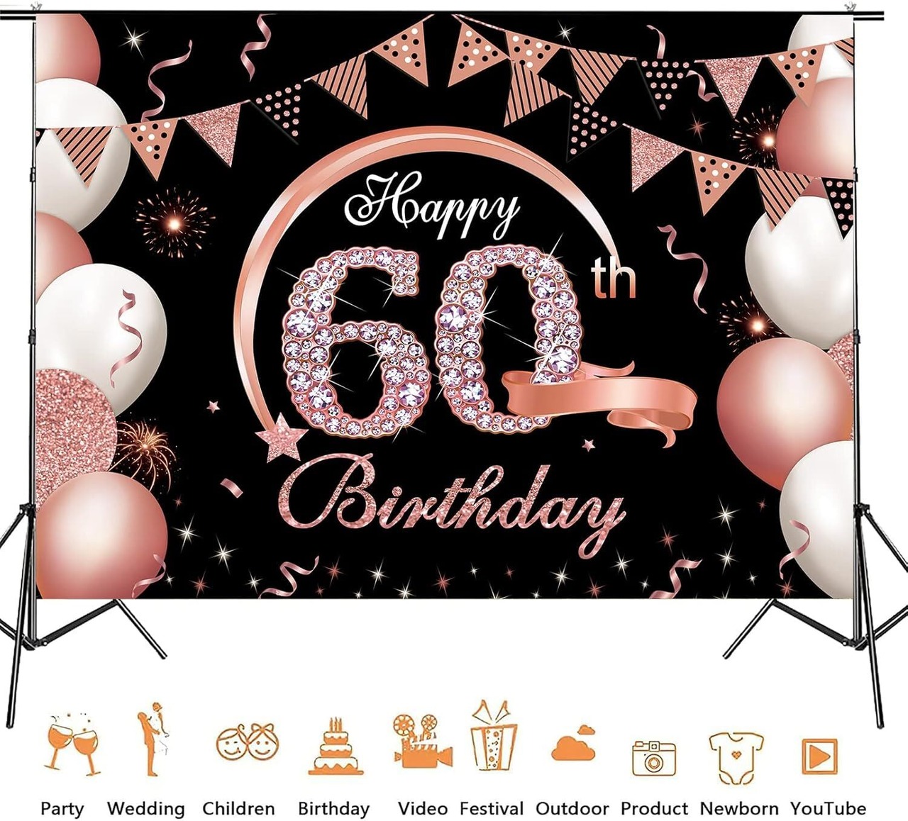 DIFEIUKI 誕生日 背景布 60歳 HAPPY BIRTHDAY タペストリー 大判 写真 撮影 背景シート 還暦祝い 飾り バースデー 飾り 記念撮影 お洒落 還暦グッズ 誕生日デコレーション パーティー用品 180*110cm