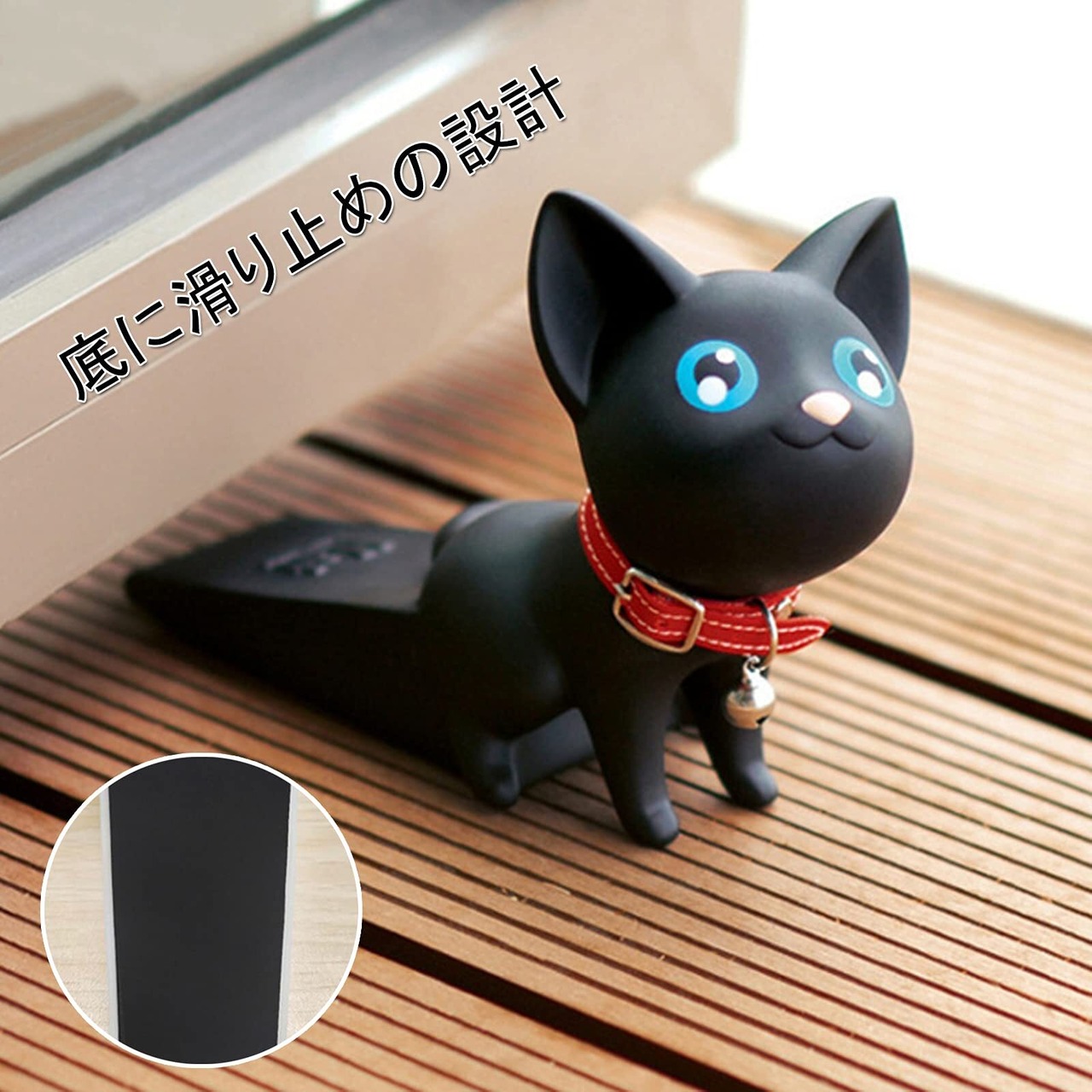 Yemax ドアストッパー 玄関 室内 かわいい猫の形 ストッパー 扉 ドア止め ドアストッパー ポルテ オフィス 家庭 滑り止め 扉開放用 ブラック