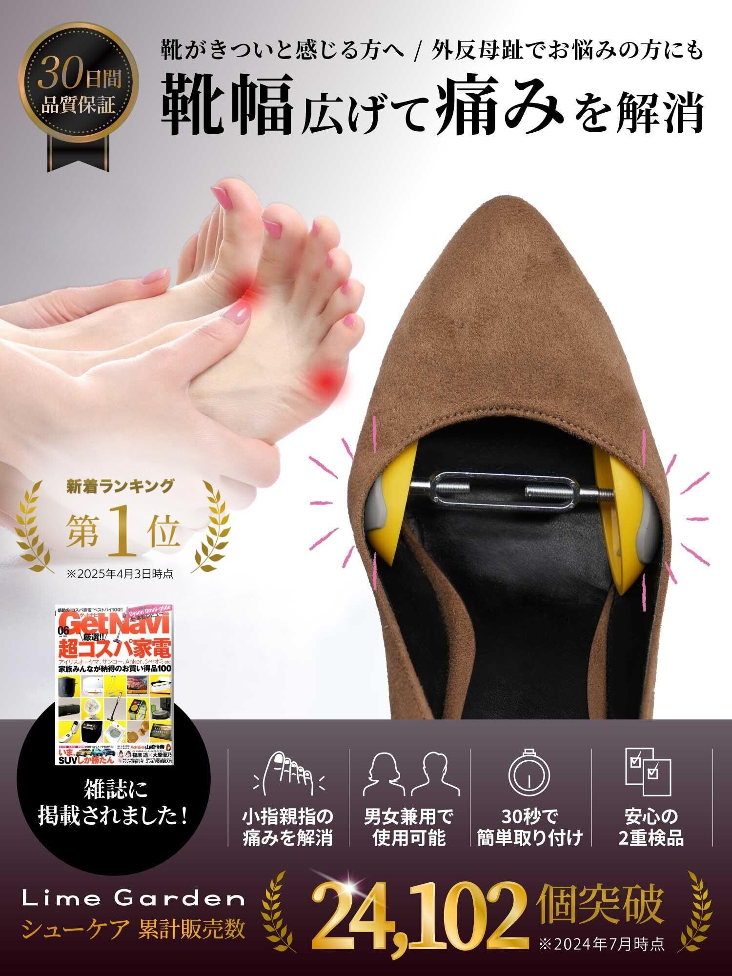[ライムガーデン] 【靴幅広げて痛みを解消】 シューズストレッチャー 2個組 男女兼用 靴サイズ伸ばし メンズ レディース パンプス スニーカー 革靴 ブーツ 【小指親指の痛みにx簡単サイズ調整x滑り止め付】SKP1080