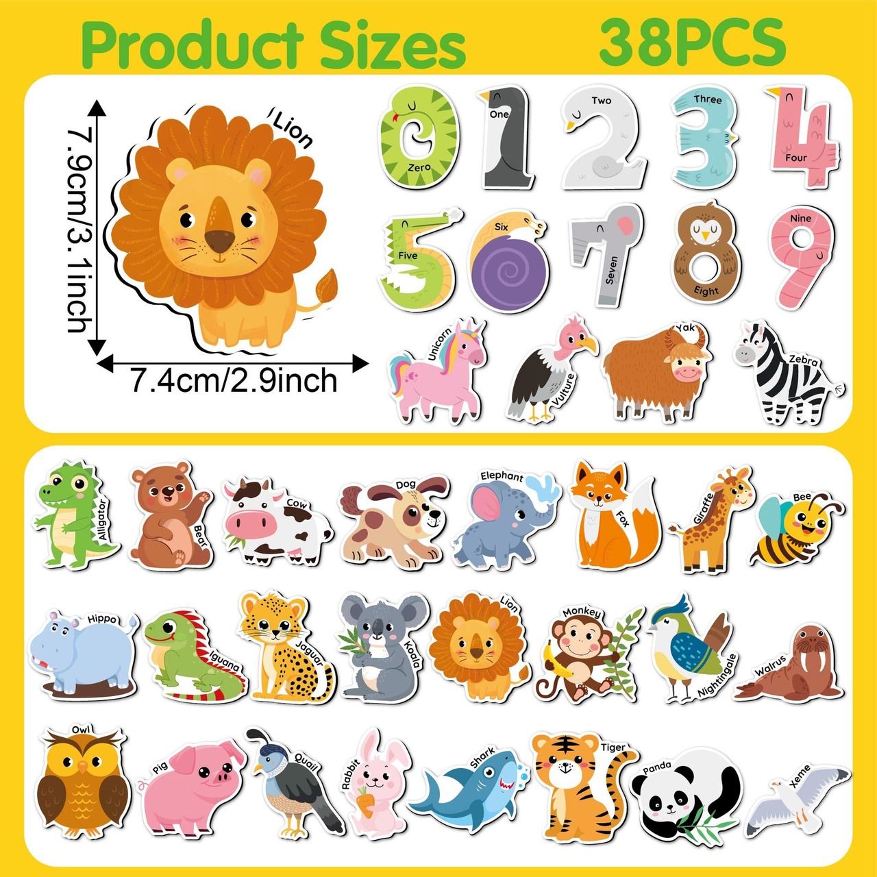CELAENO 動物柄 マグネット 冷蔵庫 ホワイトボード 車 磁気 数字 磁力強力 子供 知育 ステッカー 38pcs