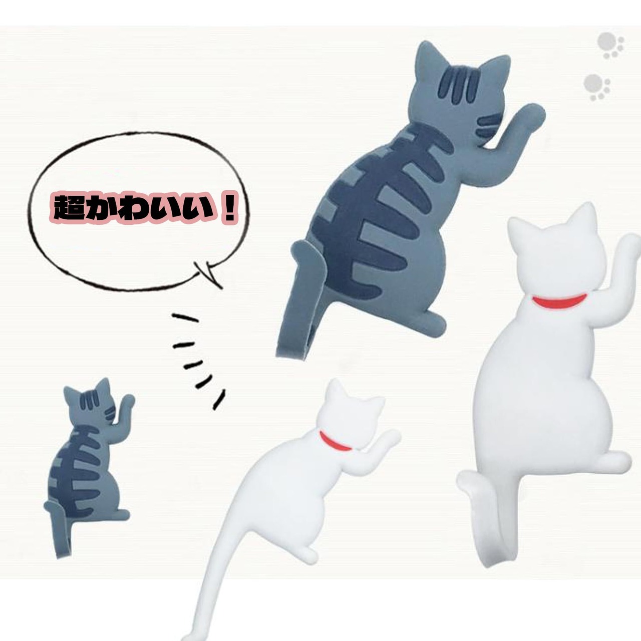 QEZEZA マグネットフック 猫尾フック 冷蔵庫マグネット 可愛い 強力磁石 かわいい猫 猫グッズ 部屋の壁飾り 玄関ドア 小物吊るし メモボード 猫好きプレゼント(C)