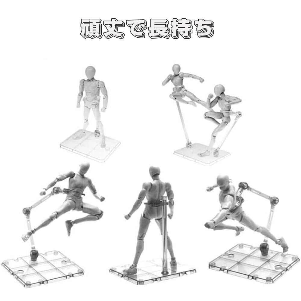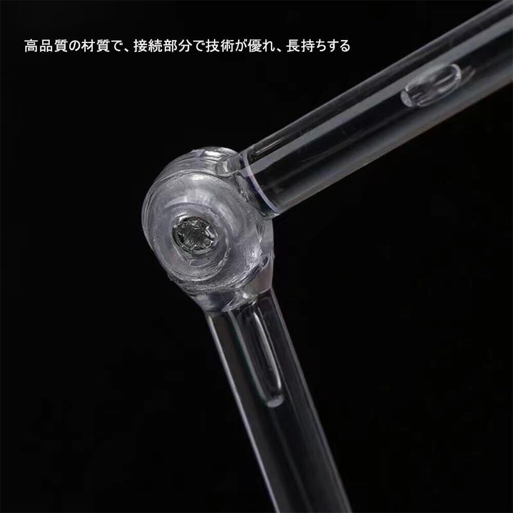 【多機能性】プラモデルを配置するだけでなく、浮かせることも可能です。アニメや漫画の名場面を再現し、アクションフィギュアのポージングも自在に表現できます。クリアなタイプなので、フィギュアやプラモデルの外観に影響しません。