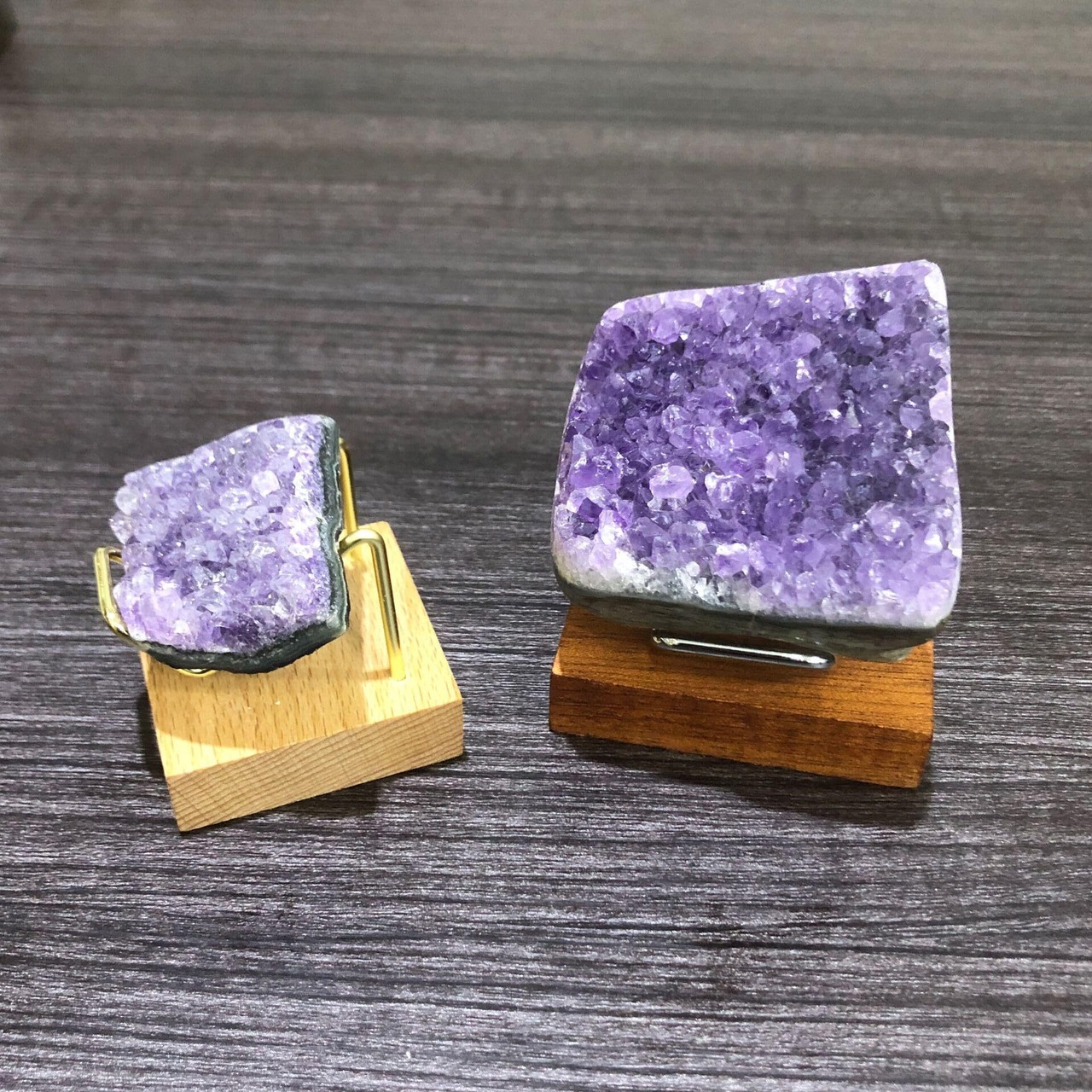 「原石や鉱物のディスプレイに最適」:木製の温かみと金属のアクセントが、鉱物の自然な輝きを際立たせ、展示物の魅力を引き立てつつ、安定性も確保します。さらに、サイズに応じた柔軟な対応が可能で、様々な原石や鉱物を美しく整理・保護しながら展示できます。