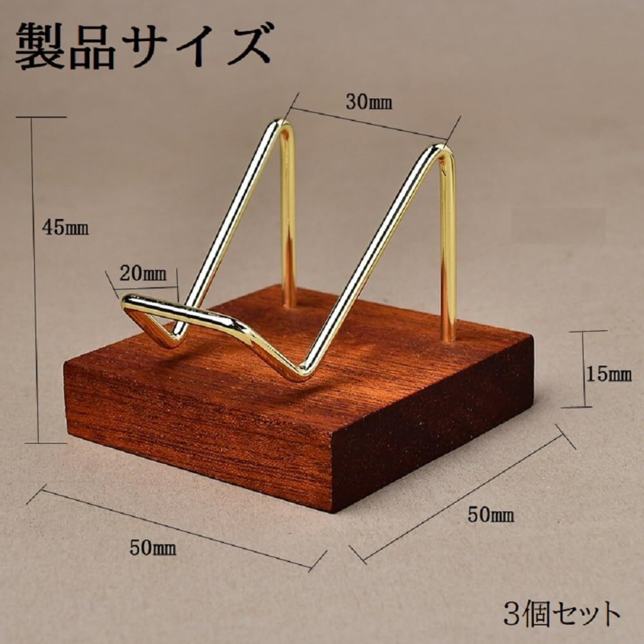 「商品仕様」:素材:天然木+鉄、サイズ:50*50*45mm、セット内容:3個セット