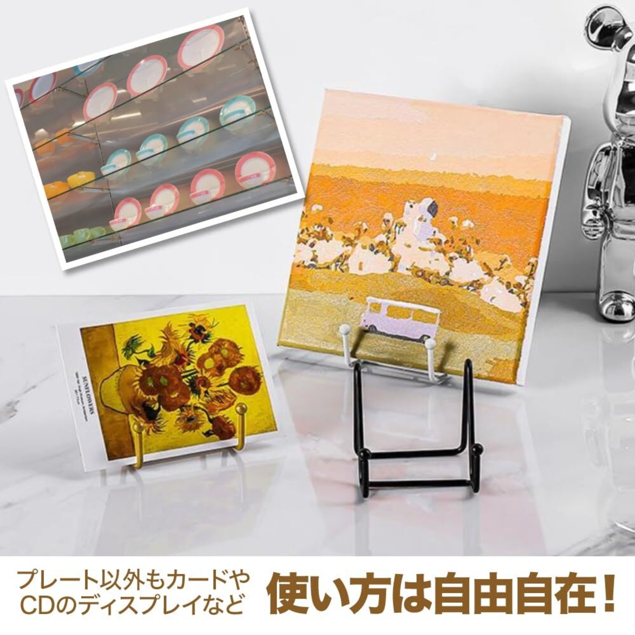 【場所を取らずどこでも立て掛け】お皿立てや写真立てとして使えるワイヤータイプの汎用スタンドです。使い分け可能な4個セットになっており、リビングや寝室など複数の場所に飾ることも出来ます。