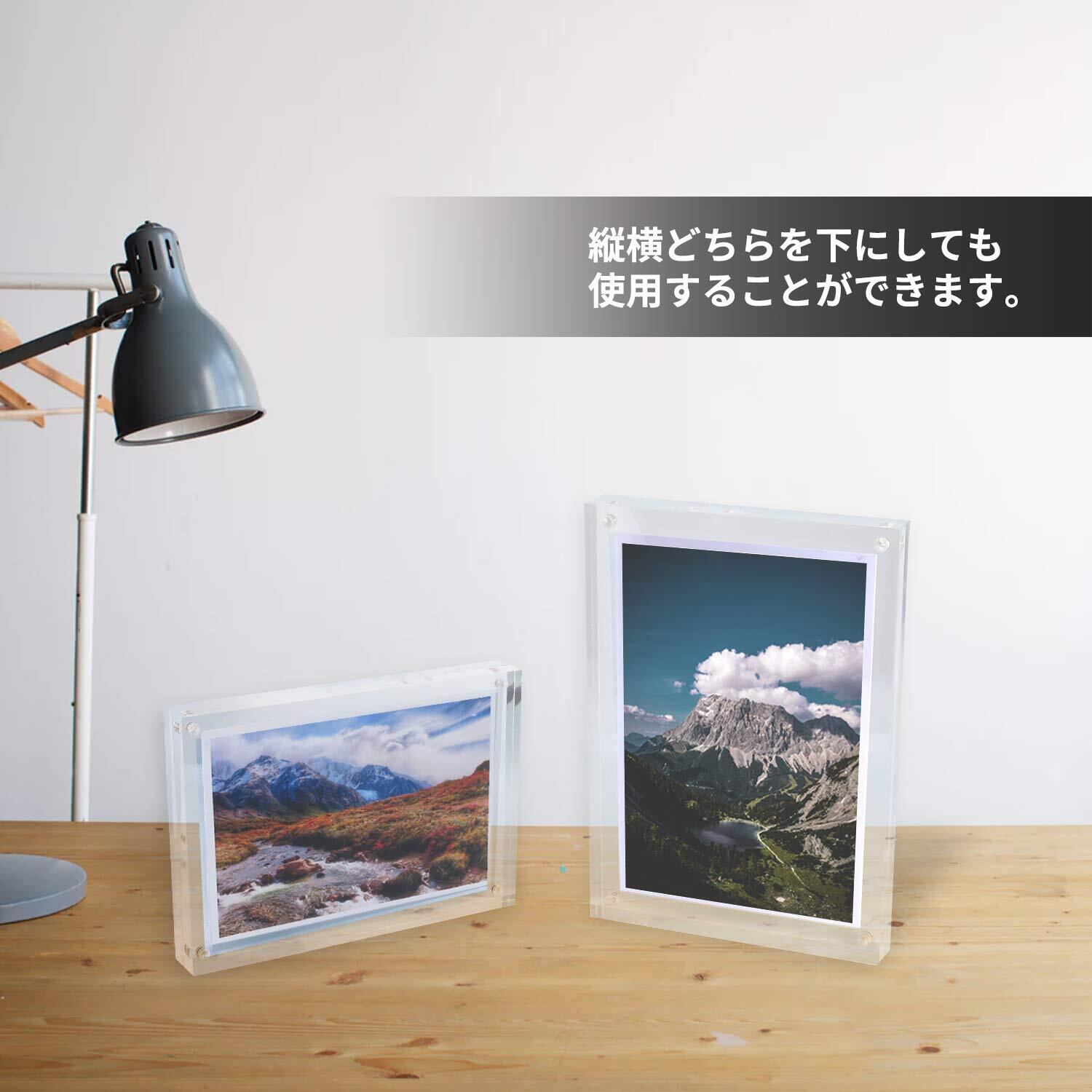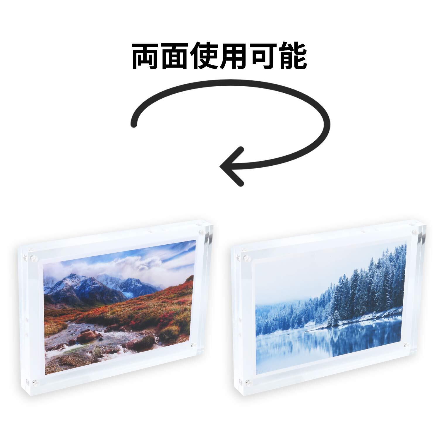 【多様な使用用途】家族写真や記念写真はもちろん、ネットプリントしたイラストやカレンダー、カードなどお気に入りの1枚をきれいに飾ることができます。また、両面透明で縦・横置き兼用なので、様々なコーディネートが可能です。