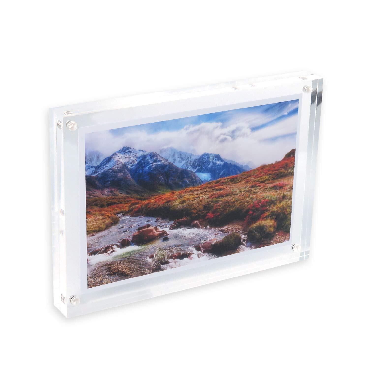 BBEST アクリルフォトフレーム ブロック型 はがき ポストカード A6サイズ 170×120mm 1個入り マグネット 縦横兼用 両面使用可能 写真立て 透明 クリア 滑り止めシール付き アクリルブロック フォトフレーム ギフト プレゼント 記念日 写真 展示 ディスプレイ おしゃれ PF-P-1