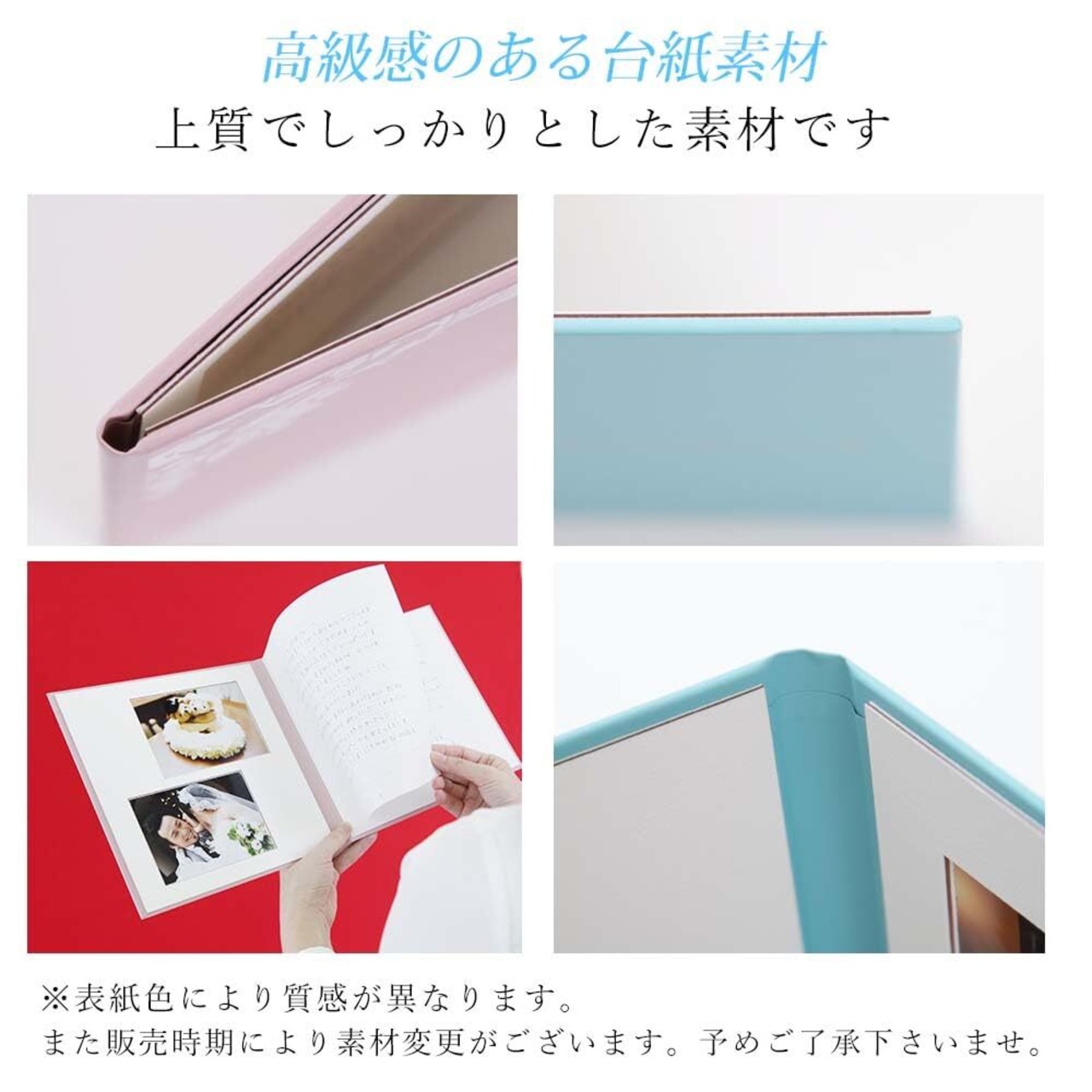 アルバムの表紙色は、お客様のご覧になっている画面の色と、実際の商品の色が異なることがございます。