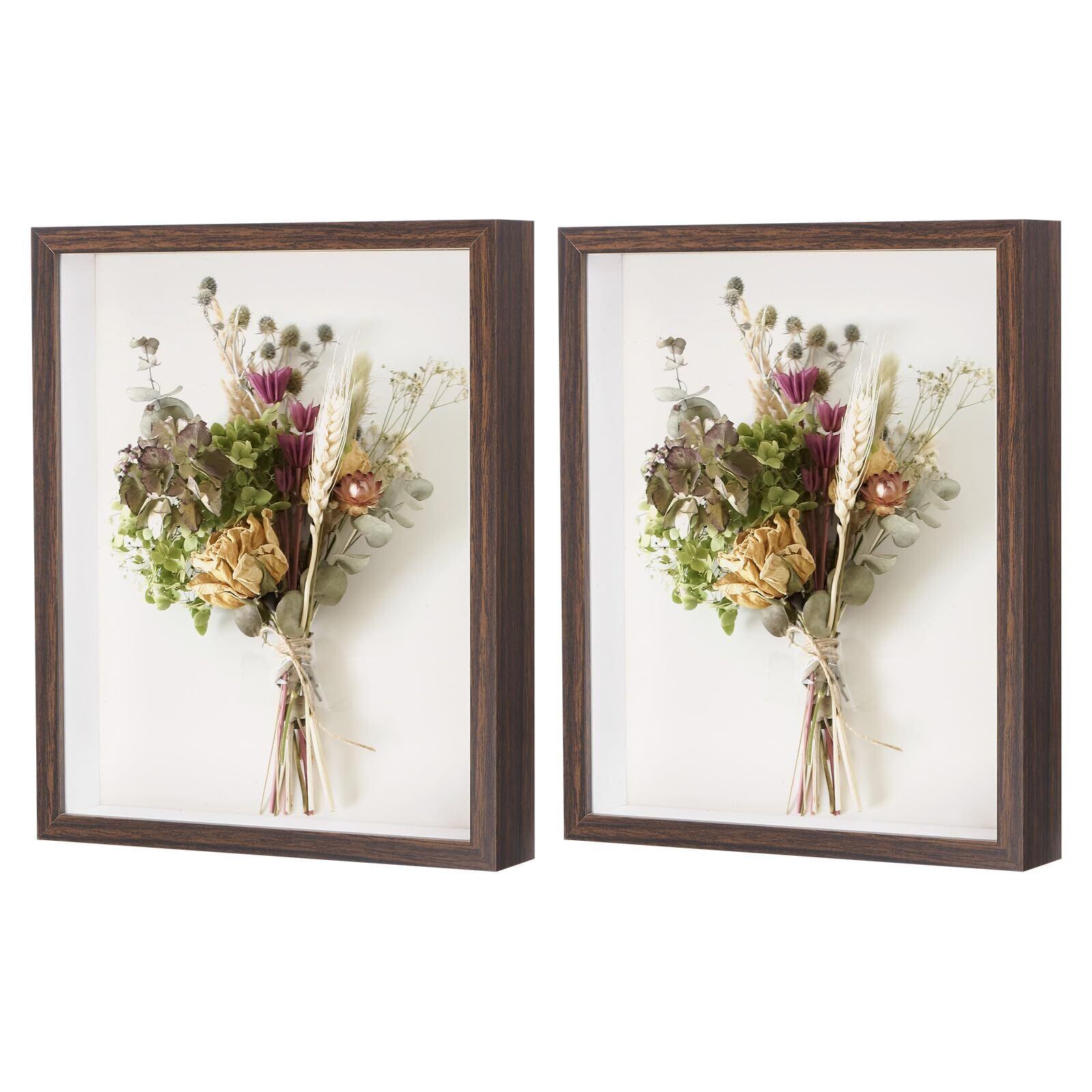 M METERXITY 2パック シャドウボックスフレーム 8 x 10" 木製ドライフラワーフォトフレーム 深いボックスフレーム シャドウボックスディスプレイケース 花/チケット/DIYクラフト用 ディスプレイフレームシャドウボックス[茶色]