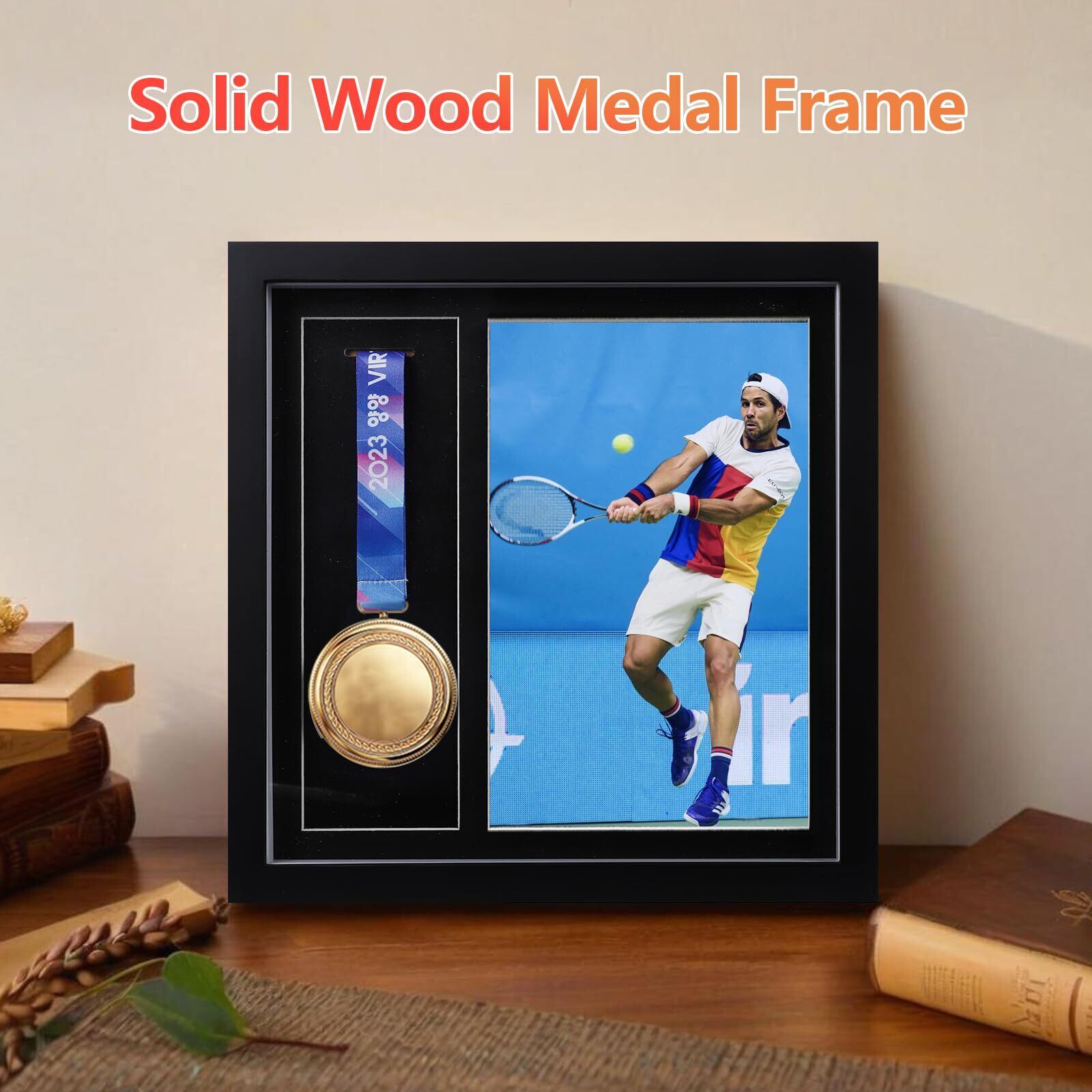 プレミアムメダルディスプレイケース&フォトフレーム – 苦労して稼いだメダルや大切な写真を飾るためにデザインされたこの13 x 13インチのシャドーボックスは、スポーツ賞、軍の栄誉、マラソンメダル、卒業証明書の展示に最適です。