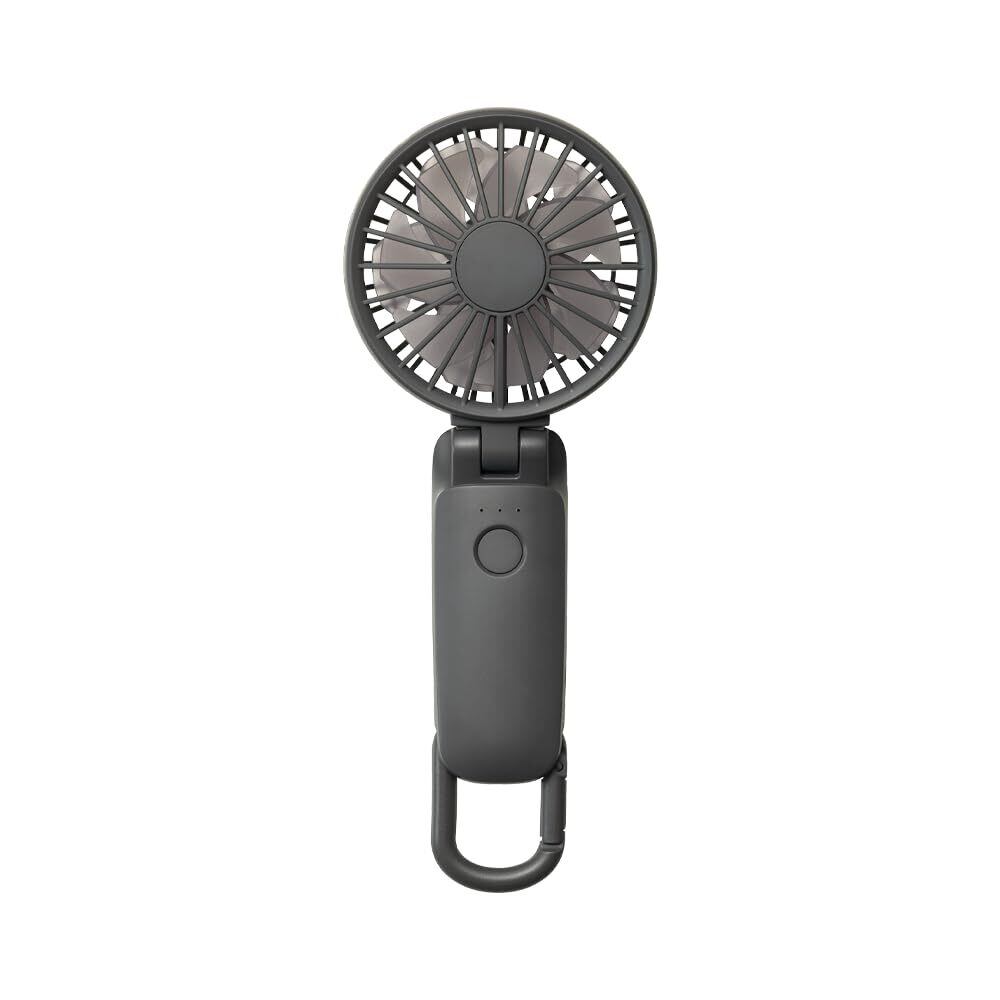 卓上扇風機やハンズフリーとしても使用可能。用途広がるネックストラップ、カラビナ付き。
