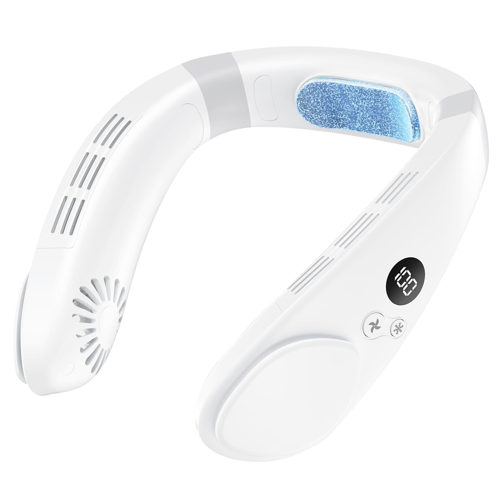 「夏革新型·首掛け扇風機」ネッククーラー ネックファン 携帯扇風機 小型 3段階風力調節 冷却プレート搭載 20dB静音 超軽量 羽根なし モバイル 強力 大風量 LEDディスプレイ表示 4400mAh大容量 長時間稼働 Type-C充電式 熱中症対策 花火大会/通勤通学/アウトドア/夏キャンプ/プレゼントなど(ホワイト)