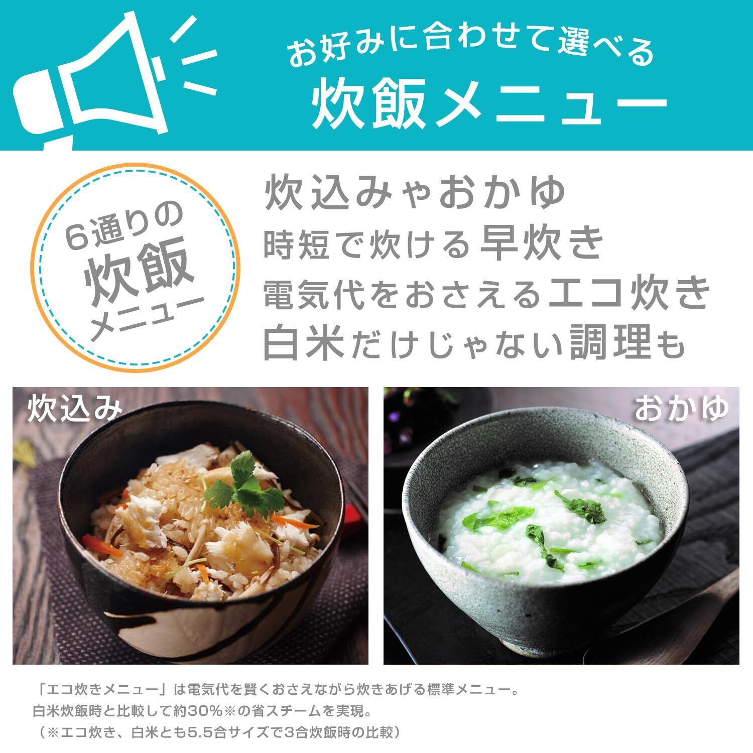 炊飯容量:5.5合炊き(最大炊飯容量:1.0L) / 加熱方式:全面加熱(ふた・側面・底)