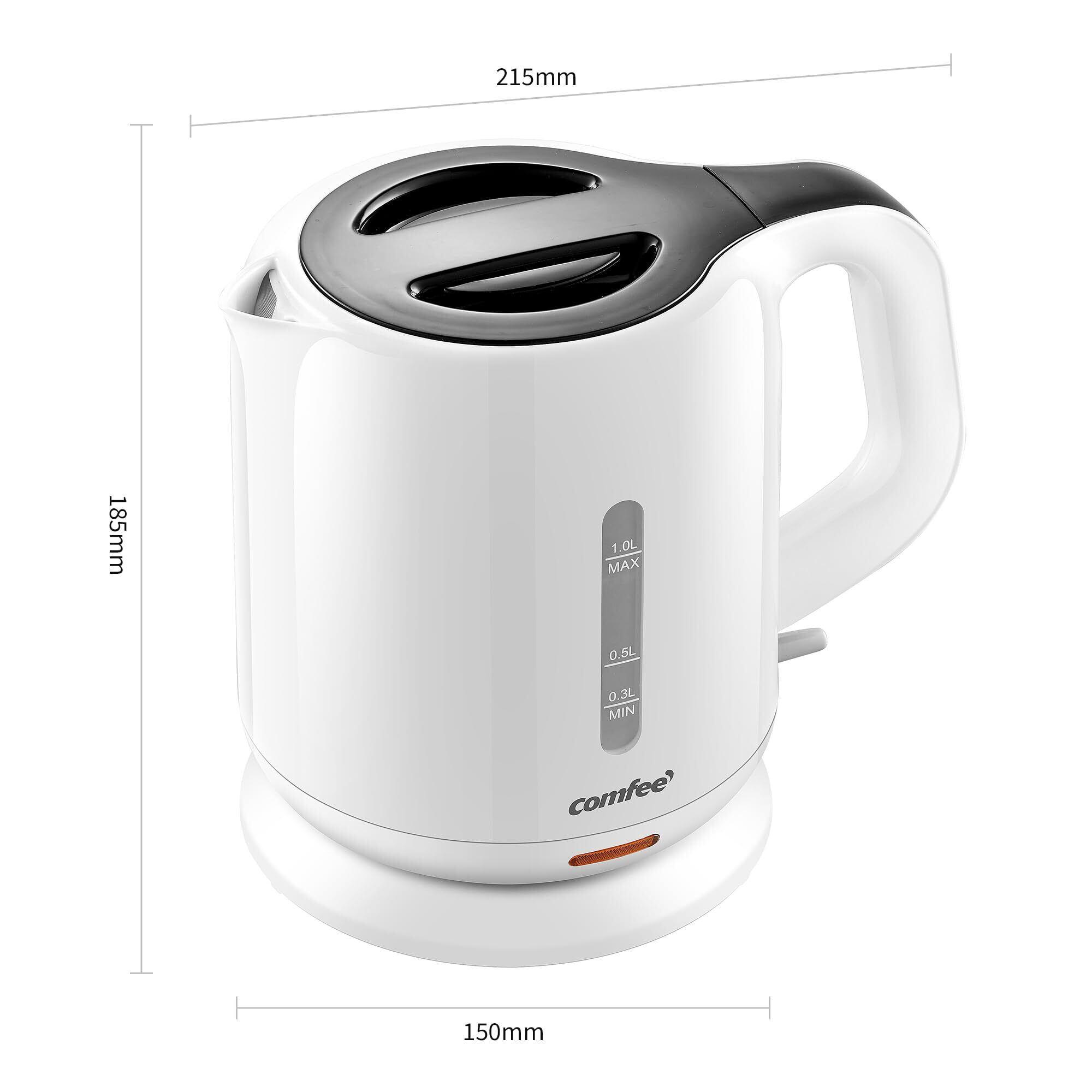 COMFEE' 電気ケトル 1.0L カンタン 急速沸騰 空焚き防止 沸騰自動OFF機能付き お手入れ簡単 コンパクト シンプル 一人暮らしに最適 ホワイト MK-08D03A