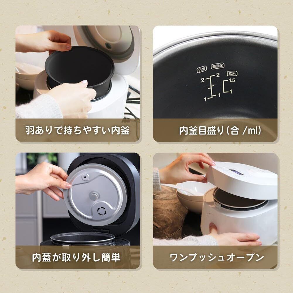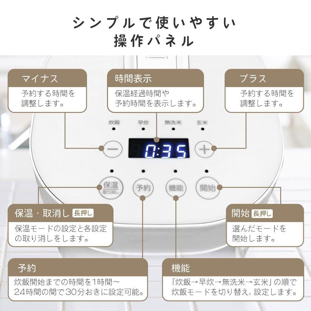 MAXZEN 炊飯器 一人暮らし ひとり暮らし 1人暮らし 無洗米 2合 2.0合 新生活 おしゃれ 二人暮らし 2人暮らし 早炊き ミニライスクッカー フッ素内釜 保温 予約 少量炊き 玄米 二合炊き ミニ キッチン家電 炊飯ジャー ホワイト RC-MX201 マクスゼン