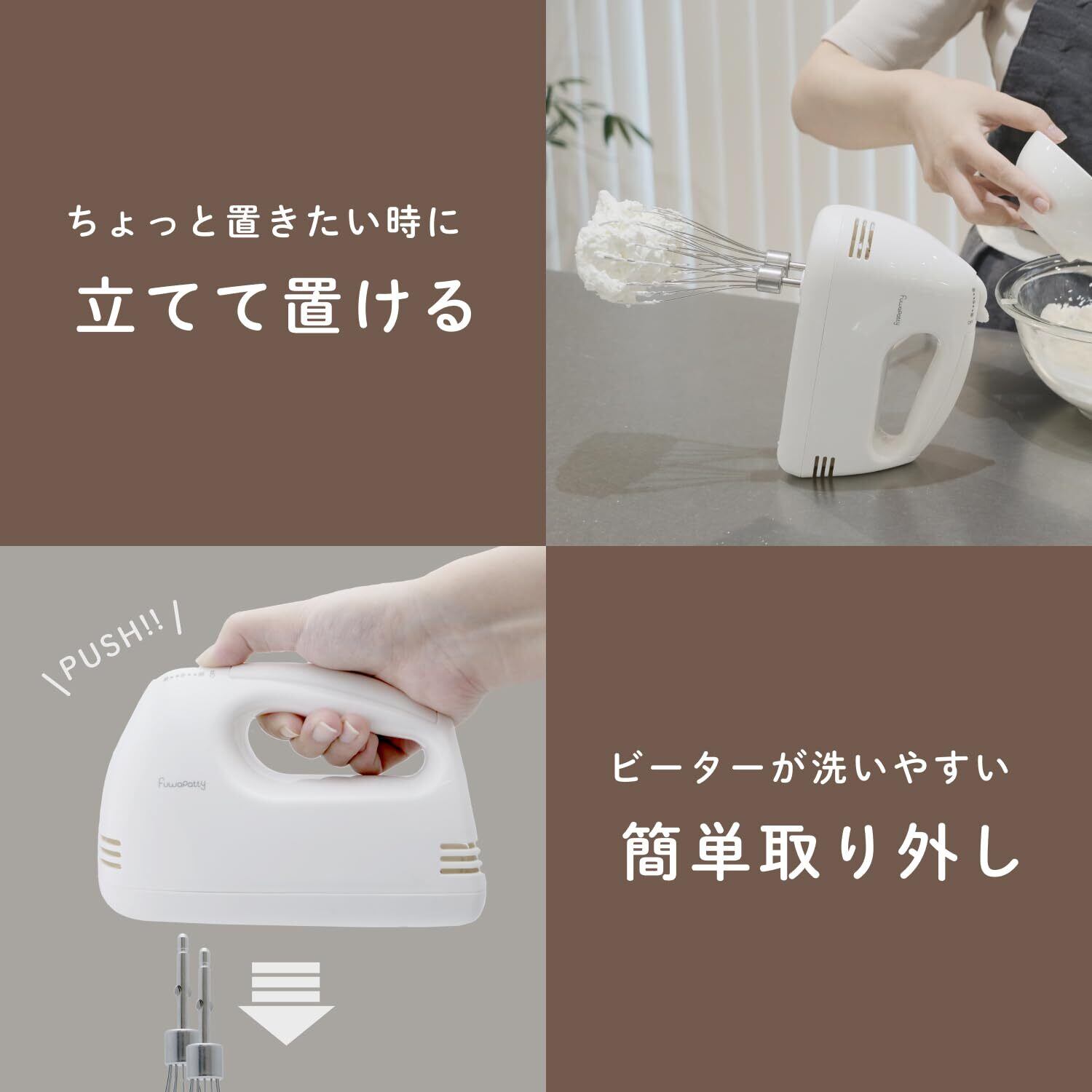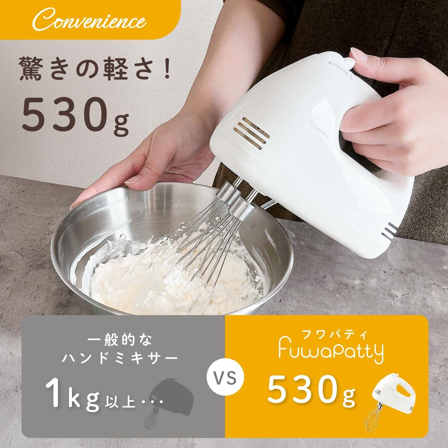 【 限定】 ヒロコーポレーション フワパティ ハンドミキサー ふわふわ 生クリーム ホイップ メレンゲ 専用 超軽量530g スピード調節 簡単取り外し お菓子づくり ホワイト