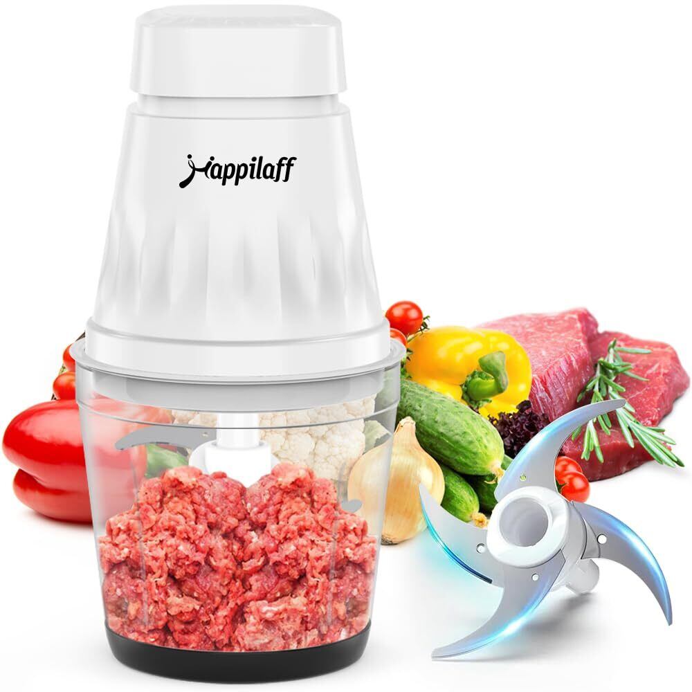 フードプロセッサー 350Wハイパワー 1台5役 みじん切り器 ステンレス4枚刃 600mlガラスボウル ミキサーチョッパー 水洗い可能 過熱保護 コンパクト設計 肉挽き/野菜切り/離乳食作りに最適 家庭用 引越し祝い 出産祝い ギフトにも happilaff