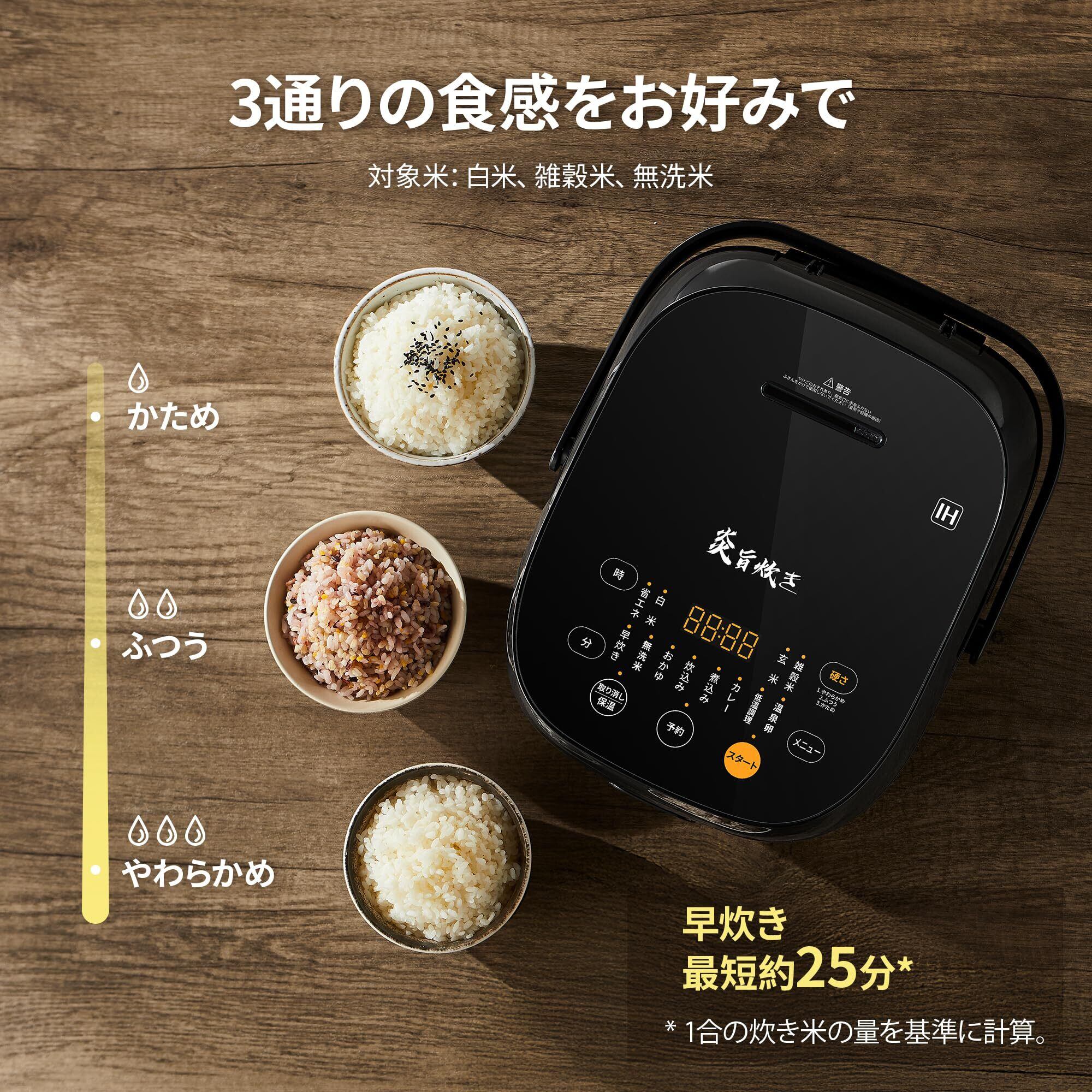 COMFEE' 炊飯器 5.5合炊き IH式 一人暮らし 2人暮らし 炊飯ジャー 1~6人用 12種類の調理メニュー付き 炎旨炊き 早炊き 最短25分炊飯 低温調理 玄米 雑穀米 保温12時間 予約機能 コンパクト ブラック