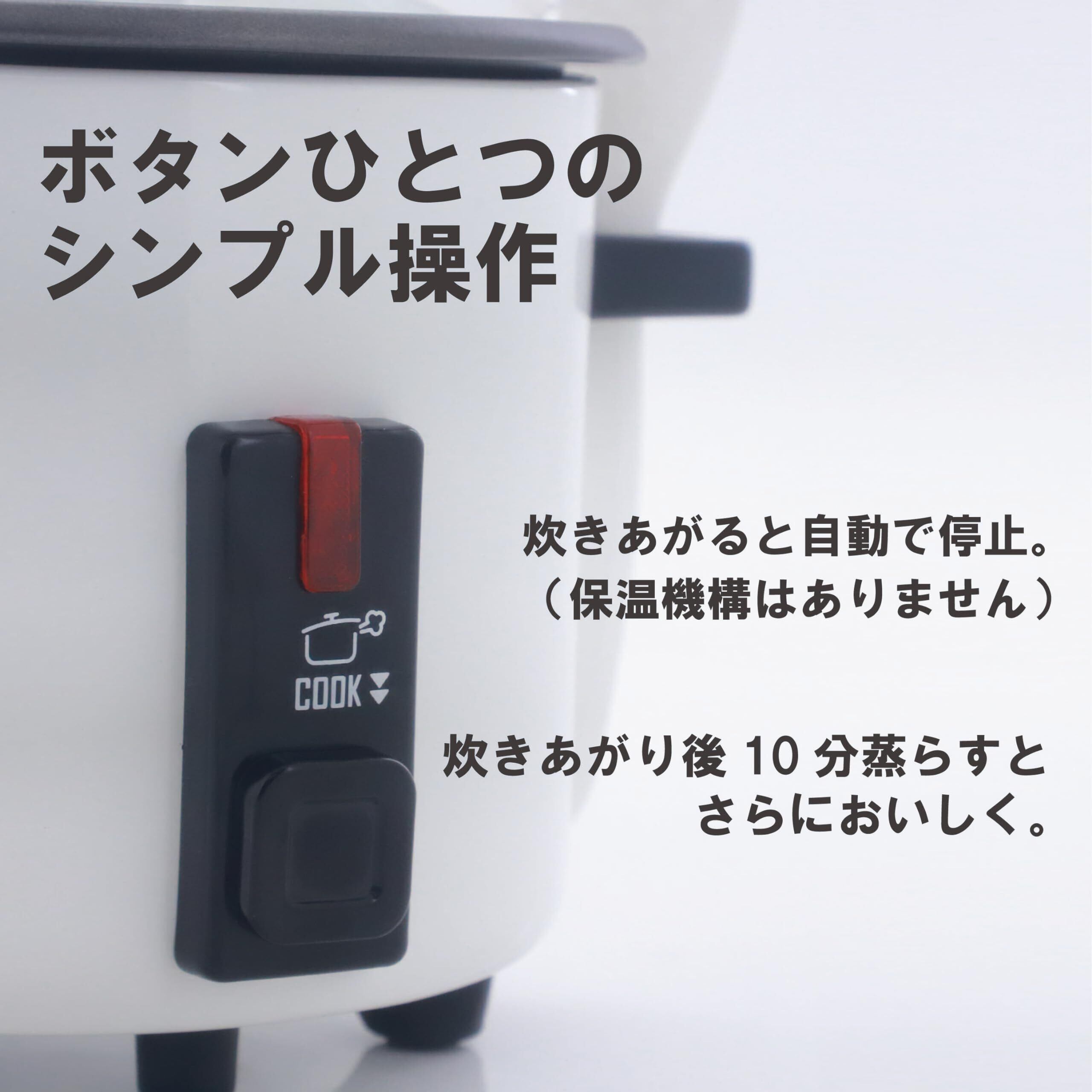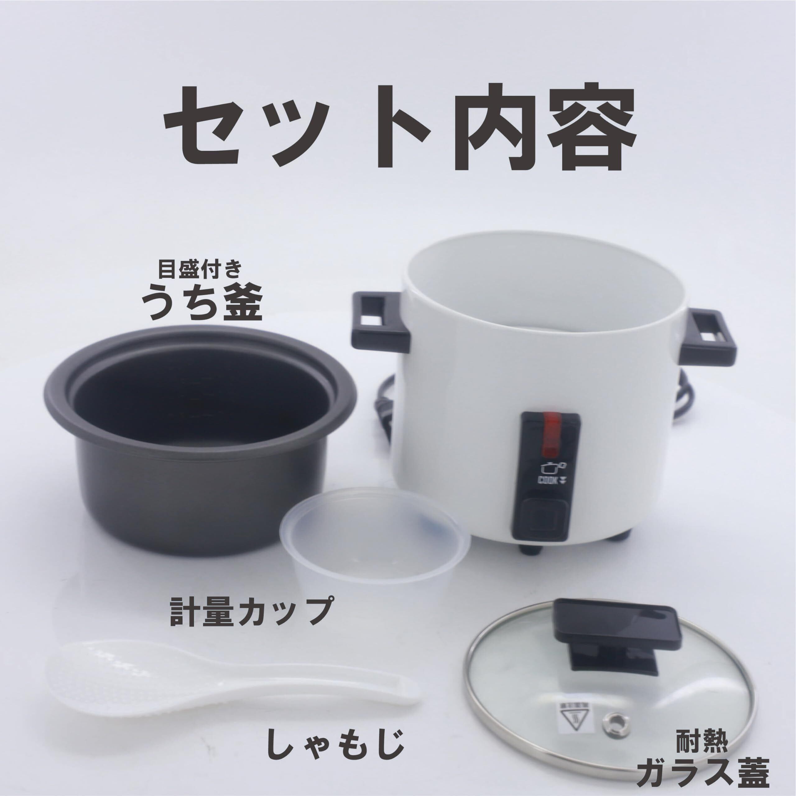 ・電源:AC100V 50/60Hz共用 ・消費電力:200W ・炊飯容量:0.5~1.5合 ・本体サイズ:約200(W)×168(D)×171(H)mm ・質量:約0.97kg ・付属品:計量カップ、しゃもじ