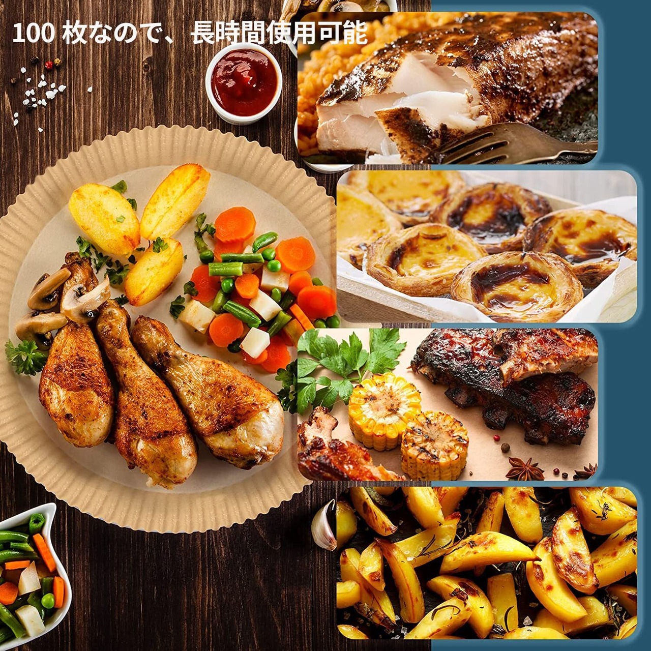 【防水・耐油・耐高温】食品グレードのパーチメント紙を使用し、防水性、耐油性、非粘着性、パーチメント紙でできているため、エアフライヤー紙は摂氏230度までの温度に耐えることができます。食べ物の味も影響を与えません。