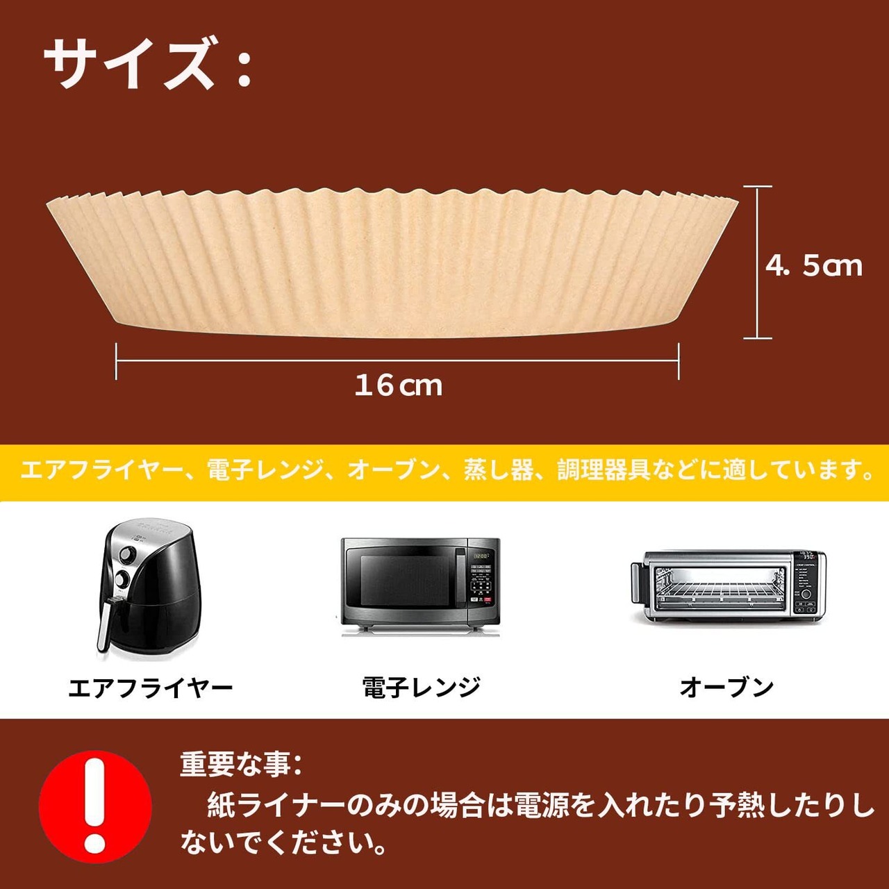 【エアフライヤー用紙算数】サイズ:内径16cm*高さ4.5cm 重さ:約250g(100枚セット 素材:食品接触用木材パルプ