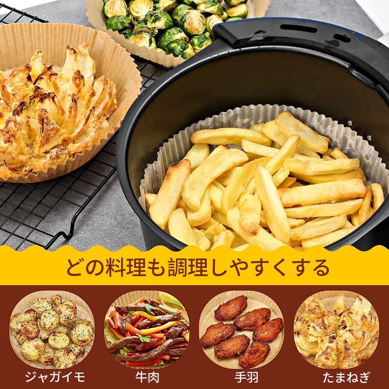 【便利さを実現した】エアフライヤーを清潔に保って、料理作る終わり、洗浄の手間がなくなった、時間と労力も節約しました。