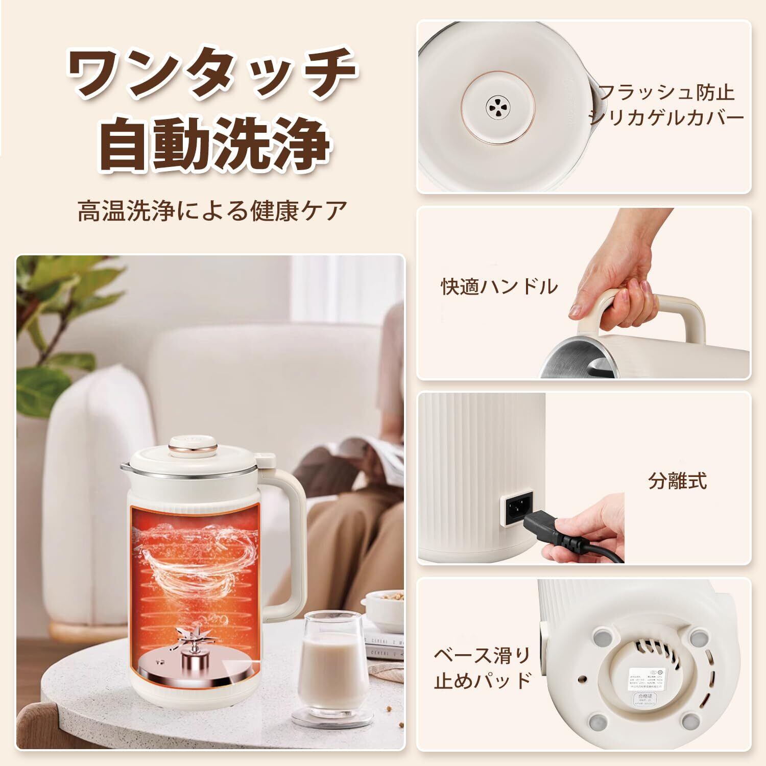 栄養補充:出来立ての豆乳で良質なタンパク質と食物繊維を摂取でき、新鮮な大豆や野菜など具材に熱を加えて攪拌まで全自動で調理できます。容量は1.2L冷飲・1L熱飲両対応で、一度に軽めの1~4人分は作れます