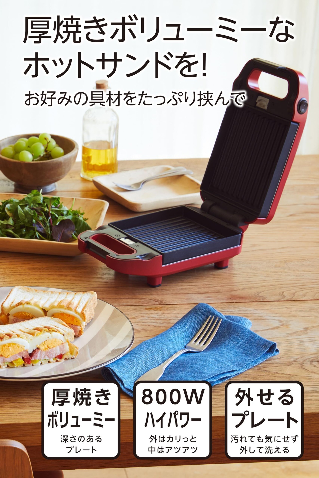 [ ビタントニオ 公式 ] 厚焼きホットサンドベーカー gooood (グード)VHS-10-TM【 ホットサンドプレート付き 】 1枚用 ホットサンドメーカー 電気 ワッフル メーカー サンドイッチメーカー (トマト)