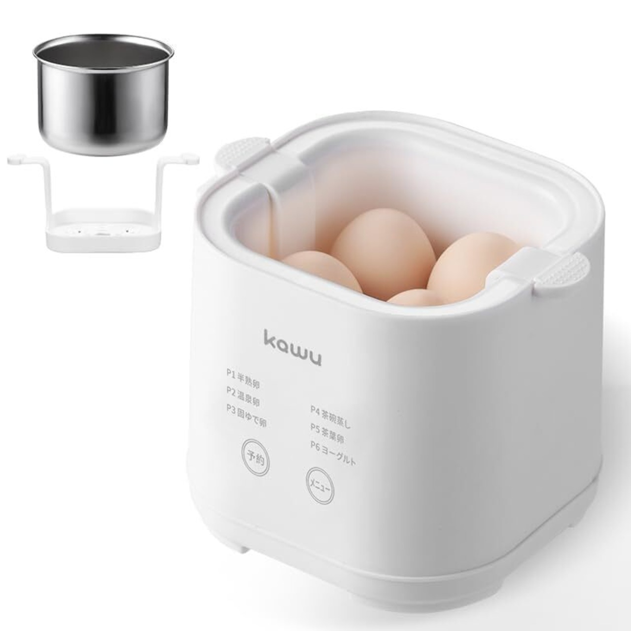KAWU ゆで卵メーカー ゆでたまこメーカー チーマー 全自動料理 蒸し器 エッグクッカー たまご4個入れ スチームクッカー 温泉たまご器 半熟たまご かたゆでたまご 温泉卵メーカー 卓上 電気調理器 キッチン用品 お弁当 クリスマスプレゼントに最適