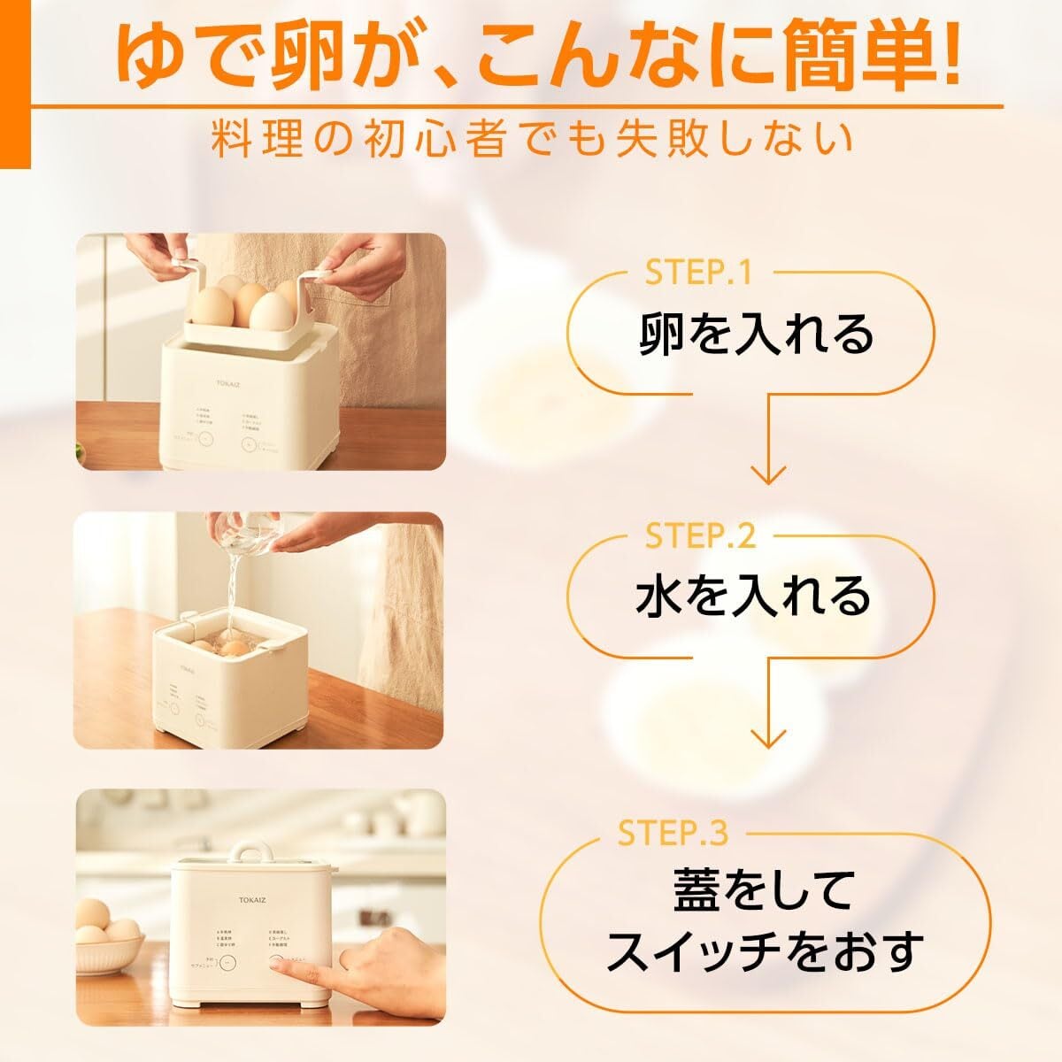 【どんな卵も作れる】温泉卵、半熟卵、固ゆで卵など、どんな卵も自宅で簡単に作れます。一度に5個の卵を調理できるので、大人数の家族におすすめ!朝食やお弁当の準備もスムーズに進みます。