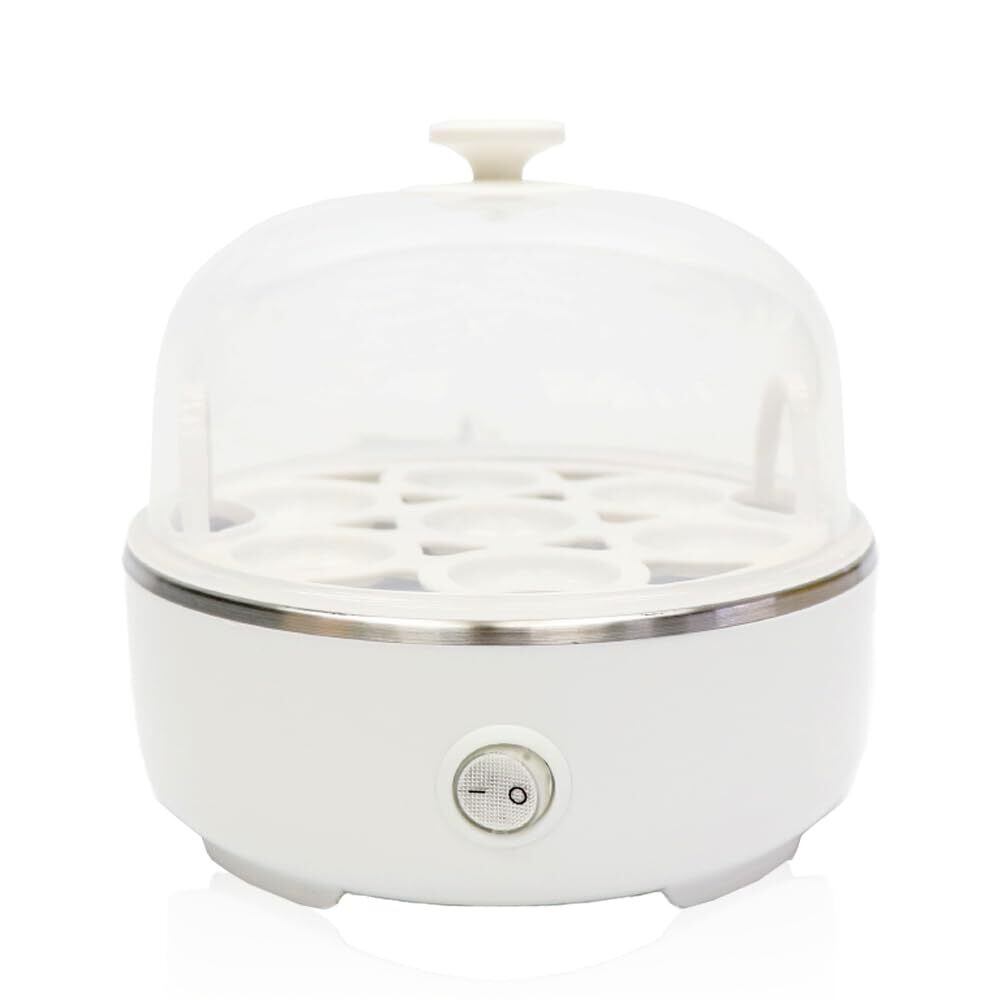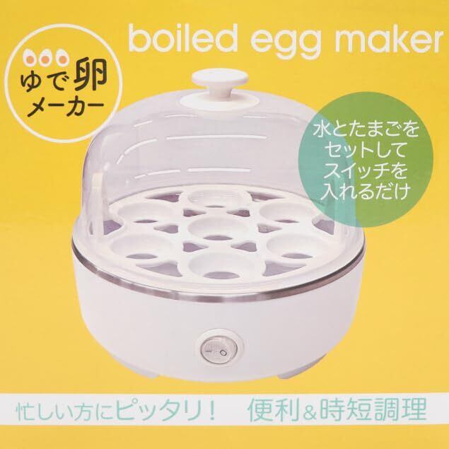 【商品説明】火を使わずに簡単にゆで卵を作る電熱式ゆで卵メーカー。卵をセットし水を注いで電源を入れるだけの簡単調理です。料理初心者の方や忙しい方にピッタリの時短調理器です。一度に最大7個も作れるので一人分でも家族まとめて作ることができます。とろとろ半熟卵は6~8分、半熟卵は8~11分、固ゆで卵は11~16分で出来上がります。好みのゆで卵を色々な料理に使用できます。ラーメン、サラダ、サンドイッチ、おでんなどレパートリーは無限大です!6ヶ月の安心付きです。